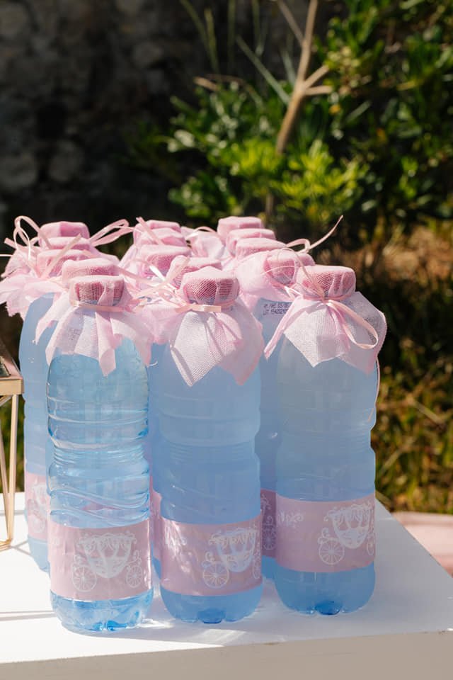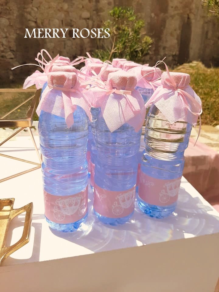 Χάρτινη, προσωποποιημένη αυτοκόλλητη ετικέτα νερού στο θέμα του προσκλητηρίου που έχετε επιλέξει.
