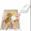 Συρταρωτή κασετίνα δώρου 19,5 εκ ×15,5 εκ × 5 εκ με 2 τμχ μελισσοκέρια Φ4 εκ ×12 εκ ,συσκευασία δώρου δεμένο με λινή κορδέλα σομών, ευκάλυπτο και χρυσό πλέξι καλό πάσχα.
