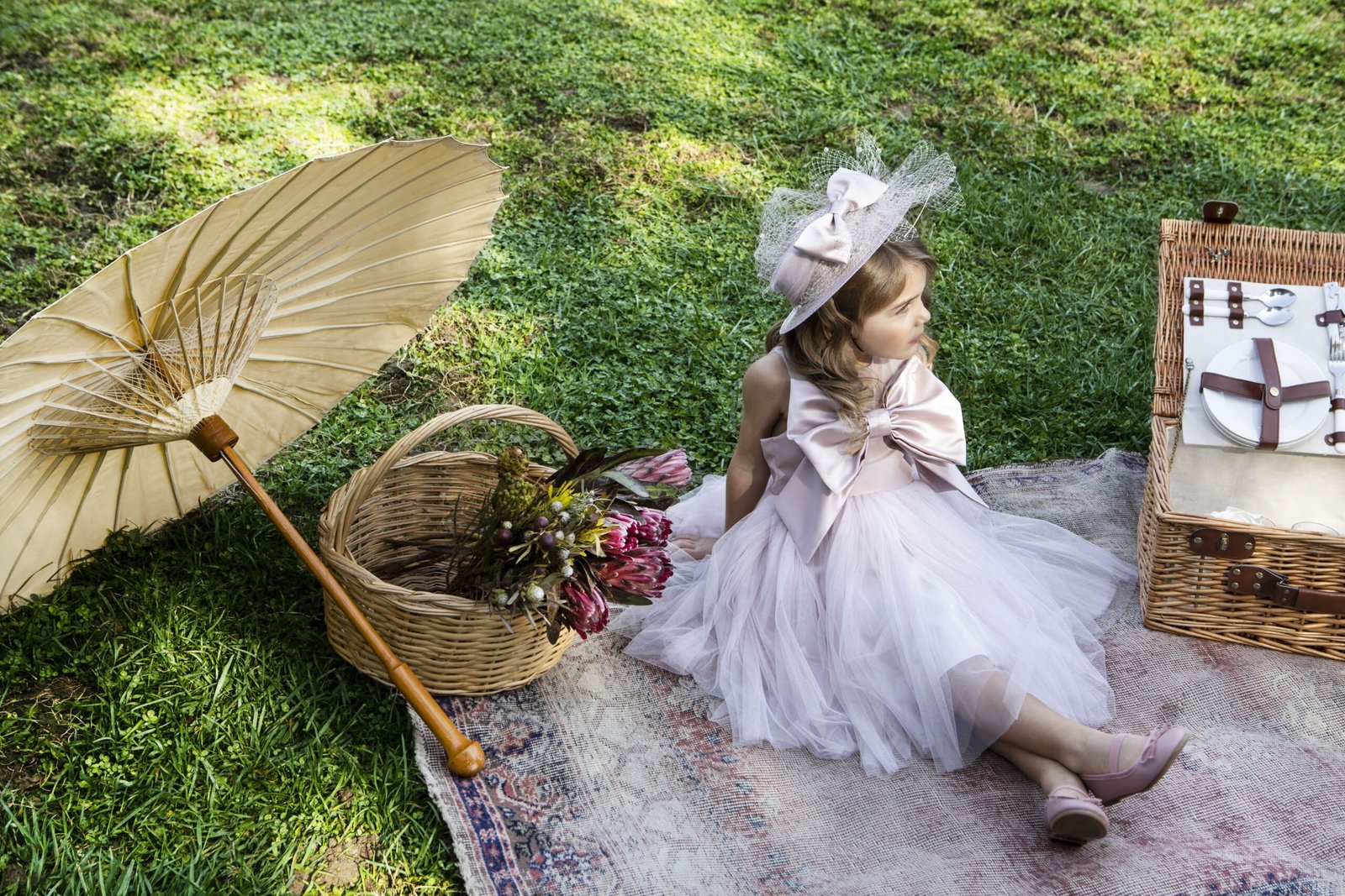 Ένα κομψό φόρεμα βάπτισης , που το χαρακτηρίζει o ιδιαίτερoς φιόγκος στο μπούστο από φίνο σατέν ύφασμα στην απόχρωση του κυκλάμινου . Αέρινη τούλινη φούστα στην ίδια απόχρωση . Η εσωτερική επένδυση του φορέματος αποτελείται από μαλακό βαμβακερό ύφασμα.