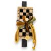 Διακόσμηση: Ξύλινη σκακιέρα (μίνι επιτραπέζιο σκάκι) με καρέ μαύρο-μπεζ και αριθμοποίηση, κορδέλες βελούδινες σε μουσταρδί, χακί και καφέ, μεταλλικοί κρίκοι, ξύλινη χάντρα, μενταγιόν “Καλό Πάσχα”