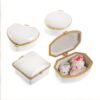 Μπιζουτιέρα λευκή από πορσελάνη με κούμπωμα σε χρυσό χρώμα. Η συσκευασία περιλαμβάνει 4 διαφορετικά σχήματα μπιζουτιέρας, στρογγυλό, καρδιά, τετράγωνη και ορθογώνια.