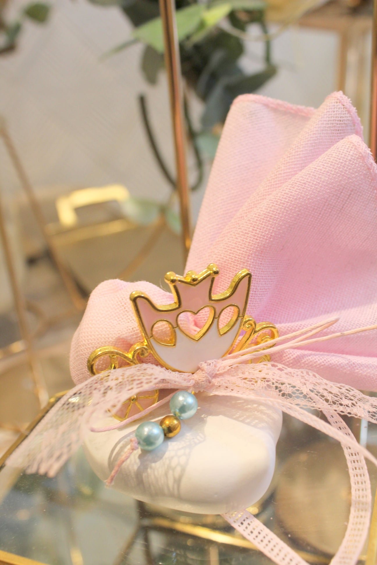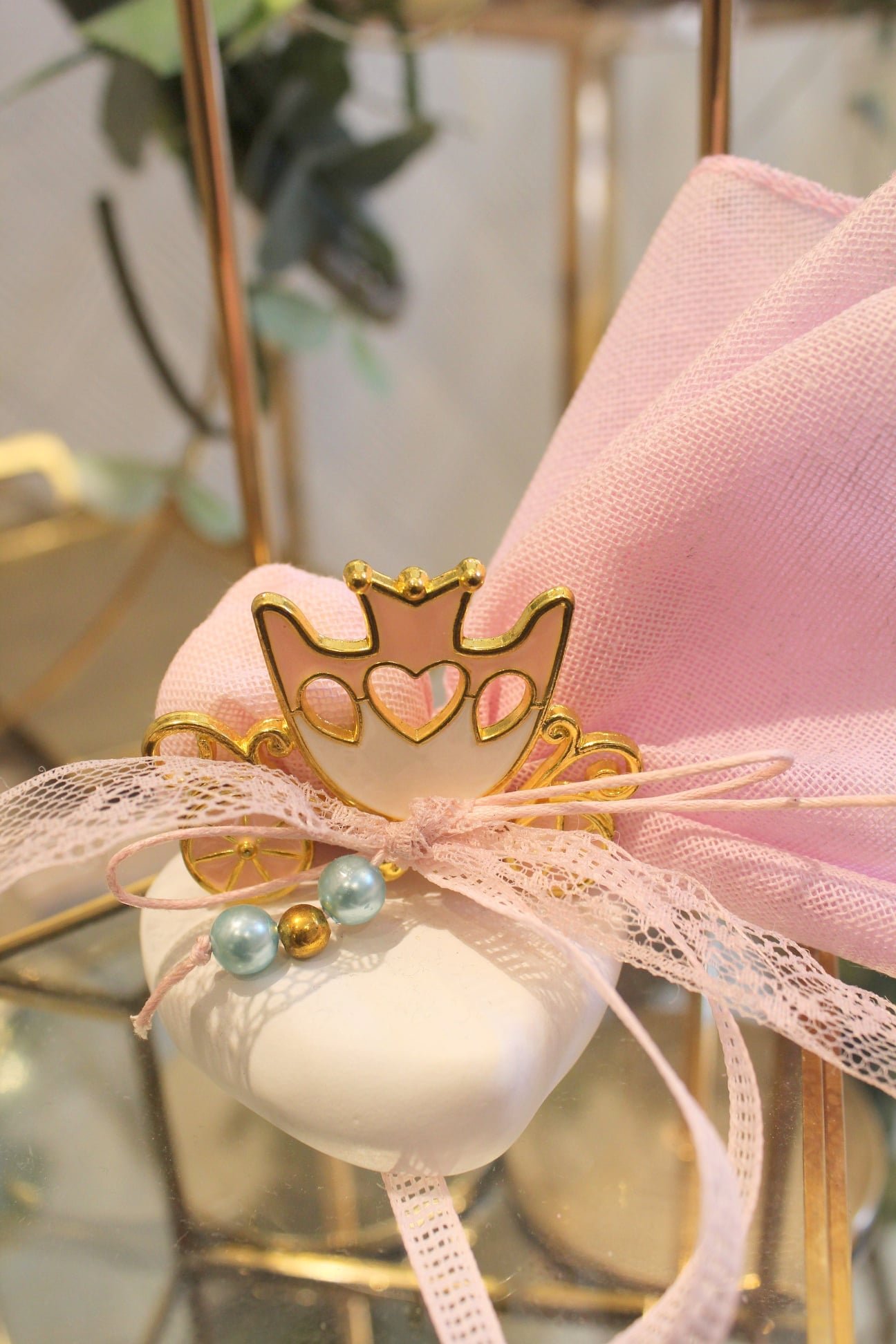 Μπομπονιέρα Βάπτισης Άμαξα Πριγκίπισσας με Πέρλες ΚΠ6