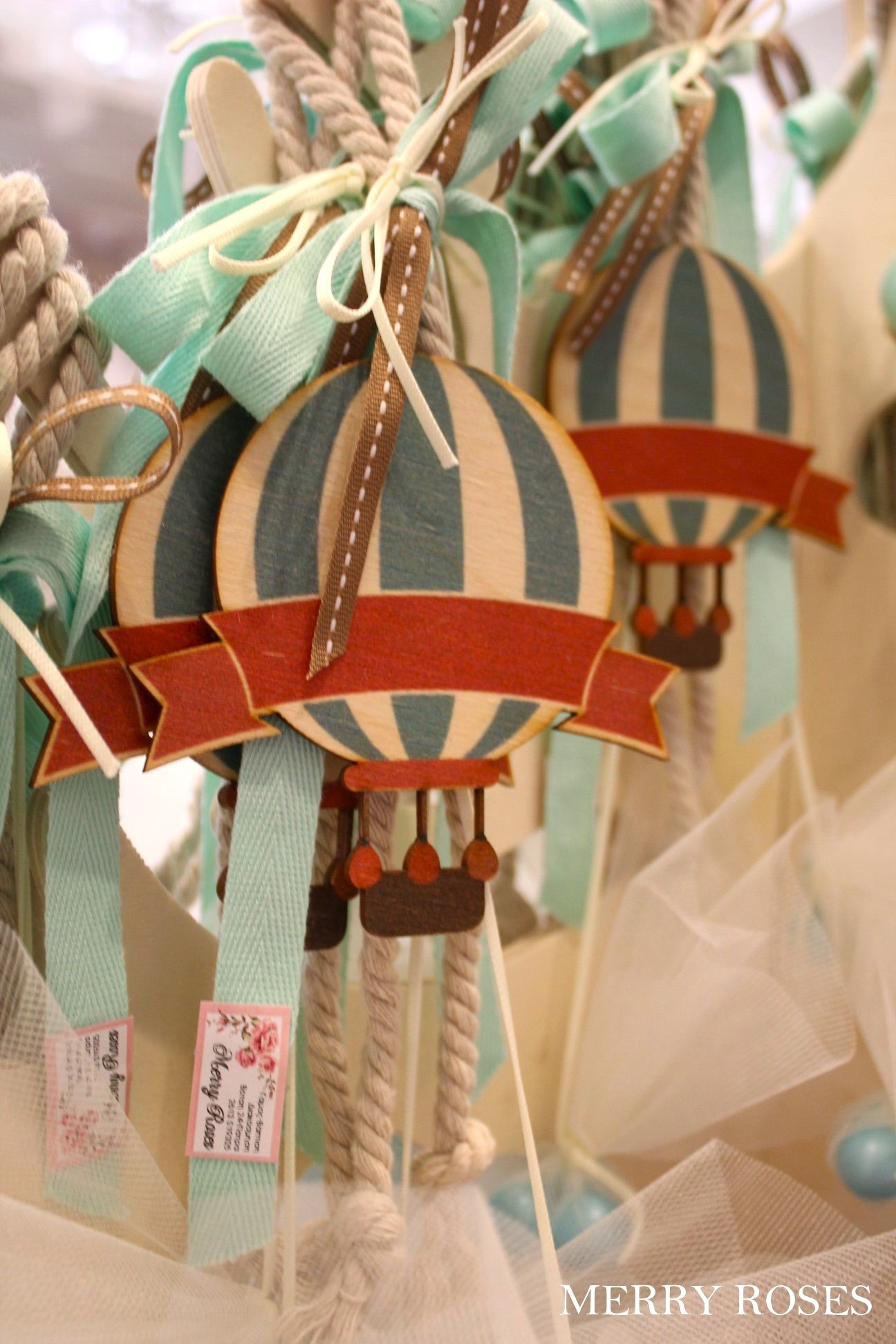 Διακοσμητική κρεμαστή μπομπονιέρα βάπτισης αερόστατο ,μαζί με το όνομα του παιδιού αν επιθυμείτε