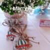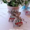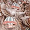 Μπομπονιέρα βάπτισης αερόστατο μπρελοκάκι με το όνομα του παιδιού,δεμένο με δερμάτινα κορδόνια σε πουγκί χάρτη
