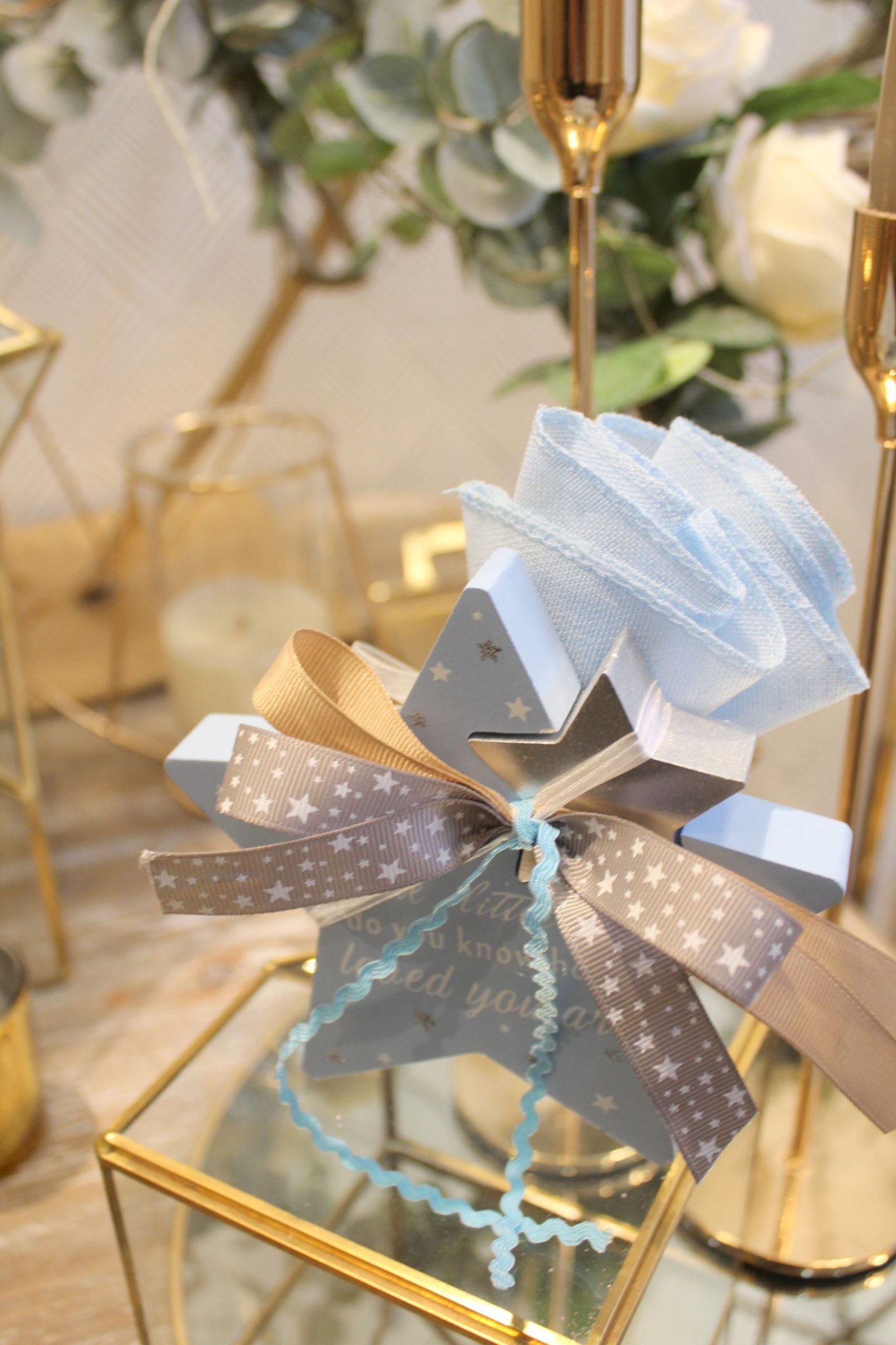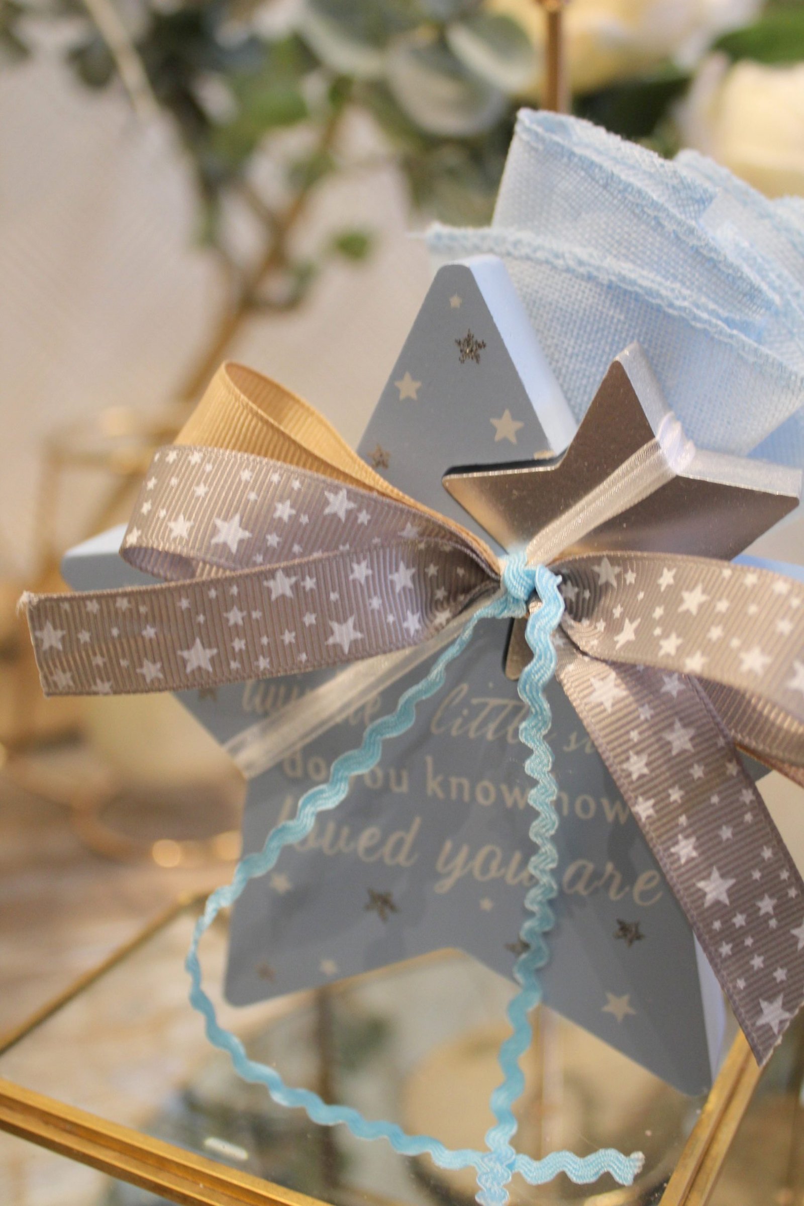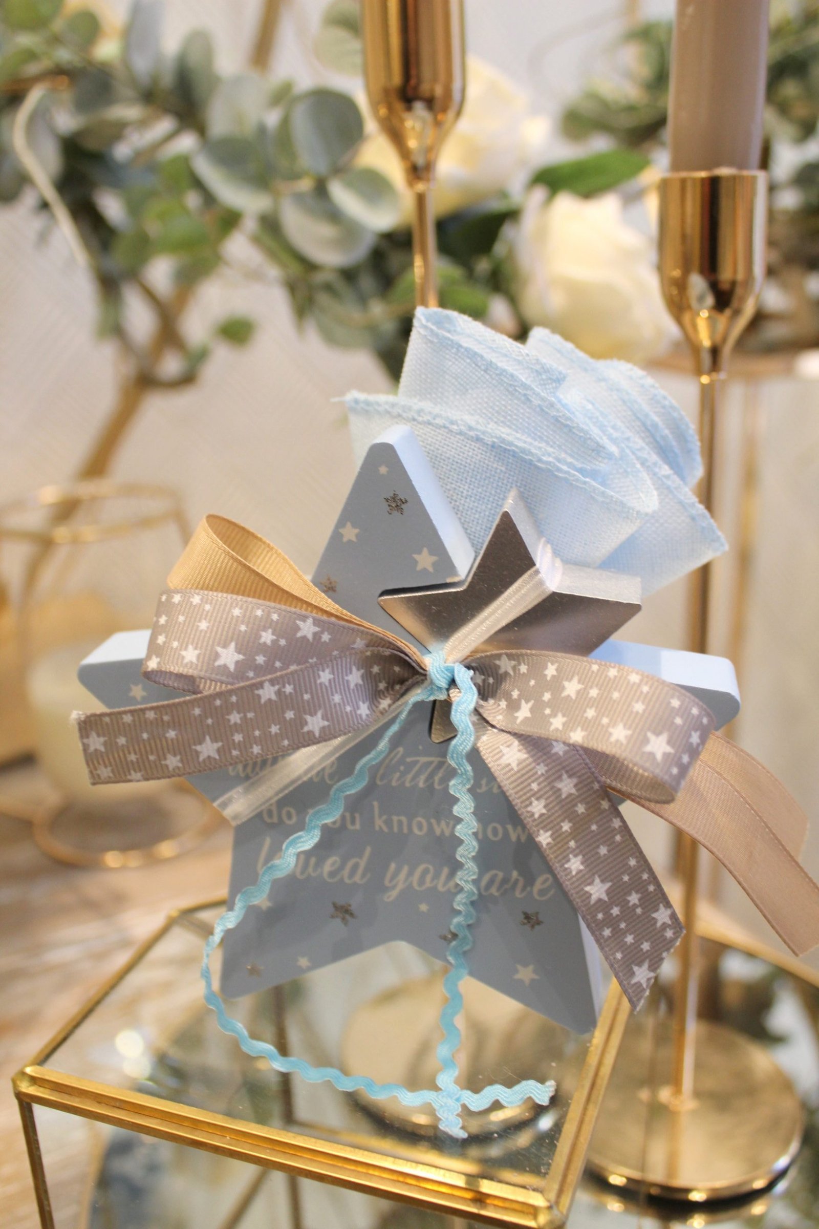 Μπομπονιέρα Βάπτισης Ξύλινο Αστέρι Σιέλ μαζί με ασημί Αστεράκι