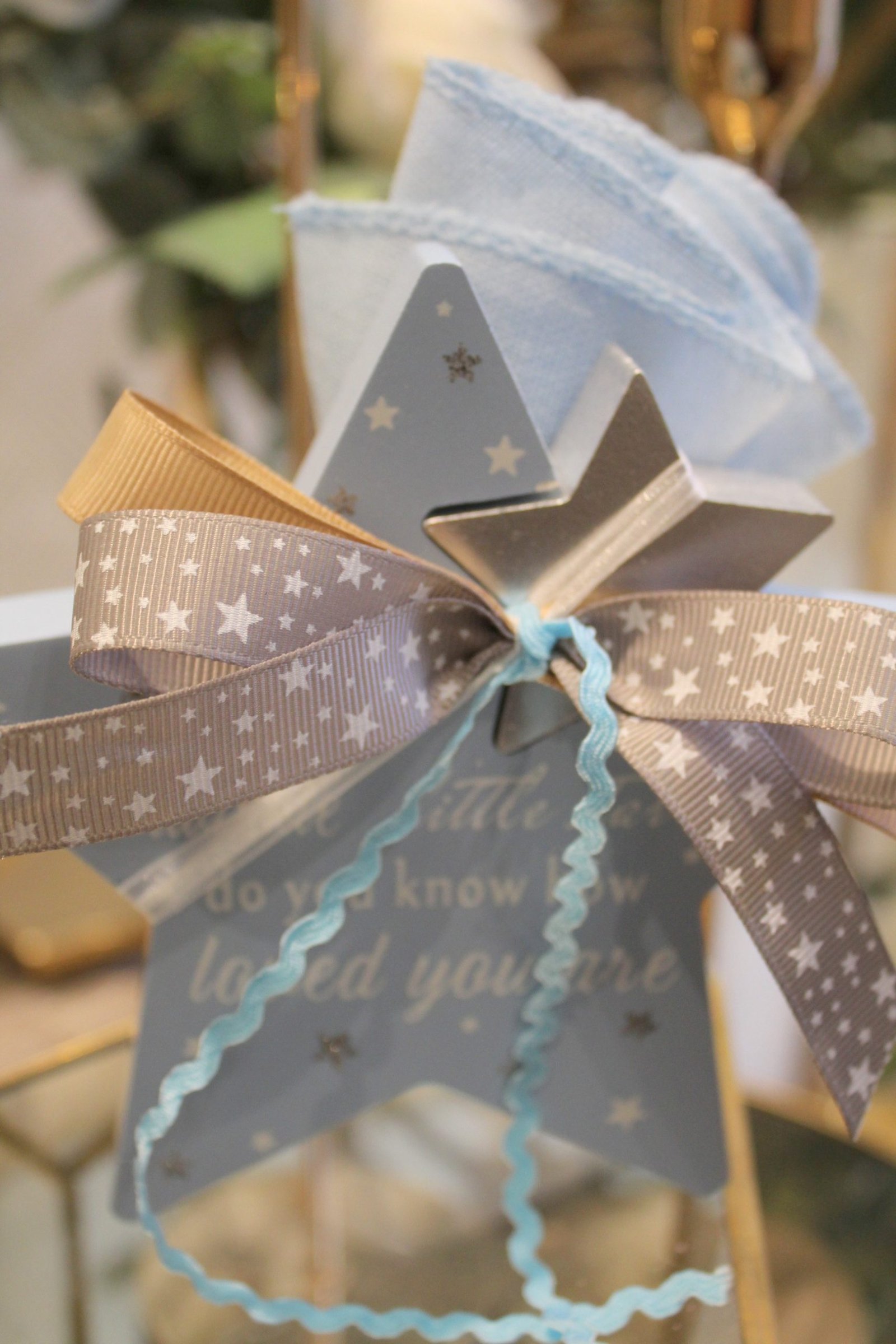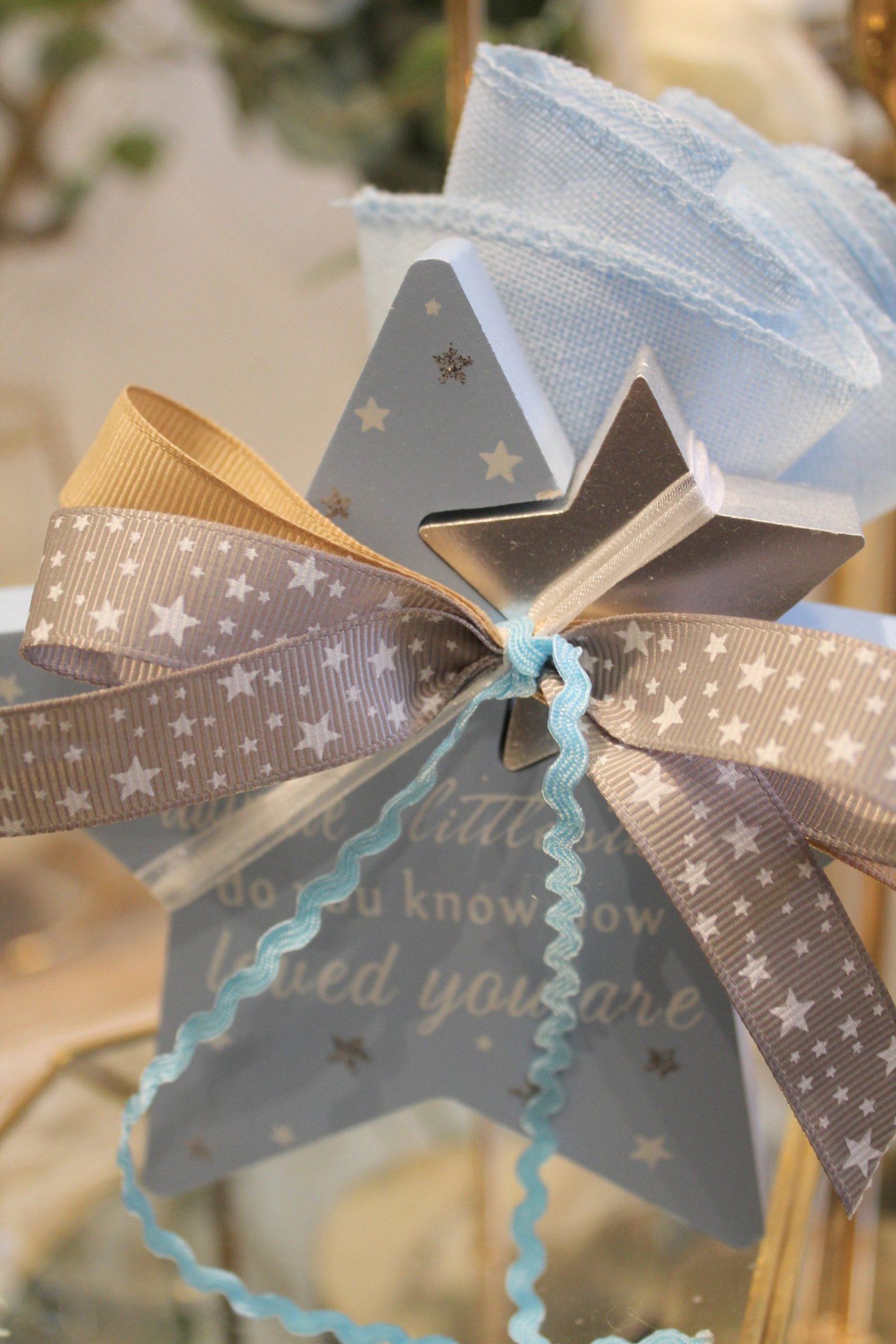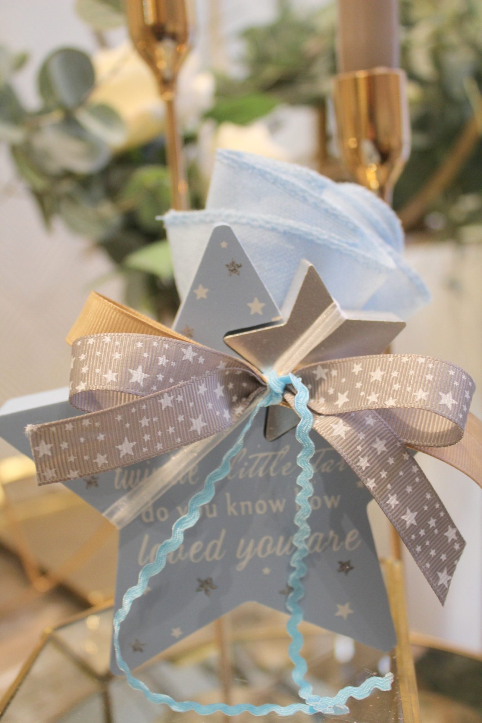 Μπομπονιέρα Βάπτισης Ξύλινο Αστέρι Σιέλ μαζί με ασημί Αστεράκι