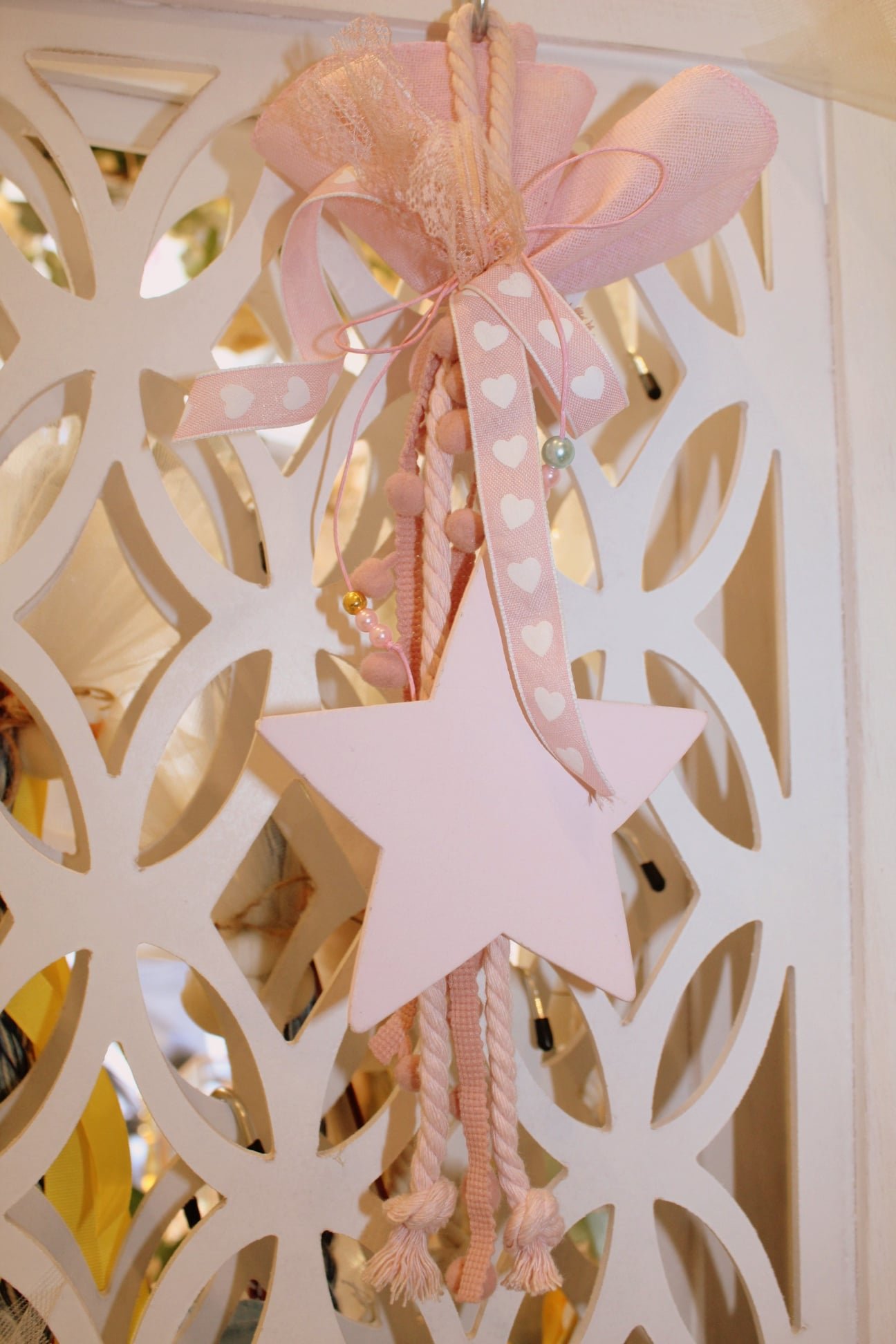 Μπομπονιέρα Βάπτισης ροζ αστέρι ,διακοσμητική κρεμαστή με πέρλες