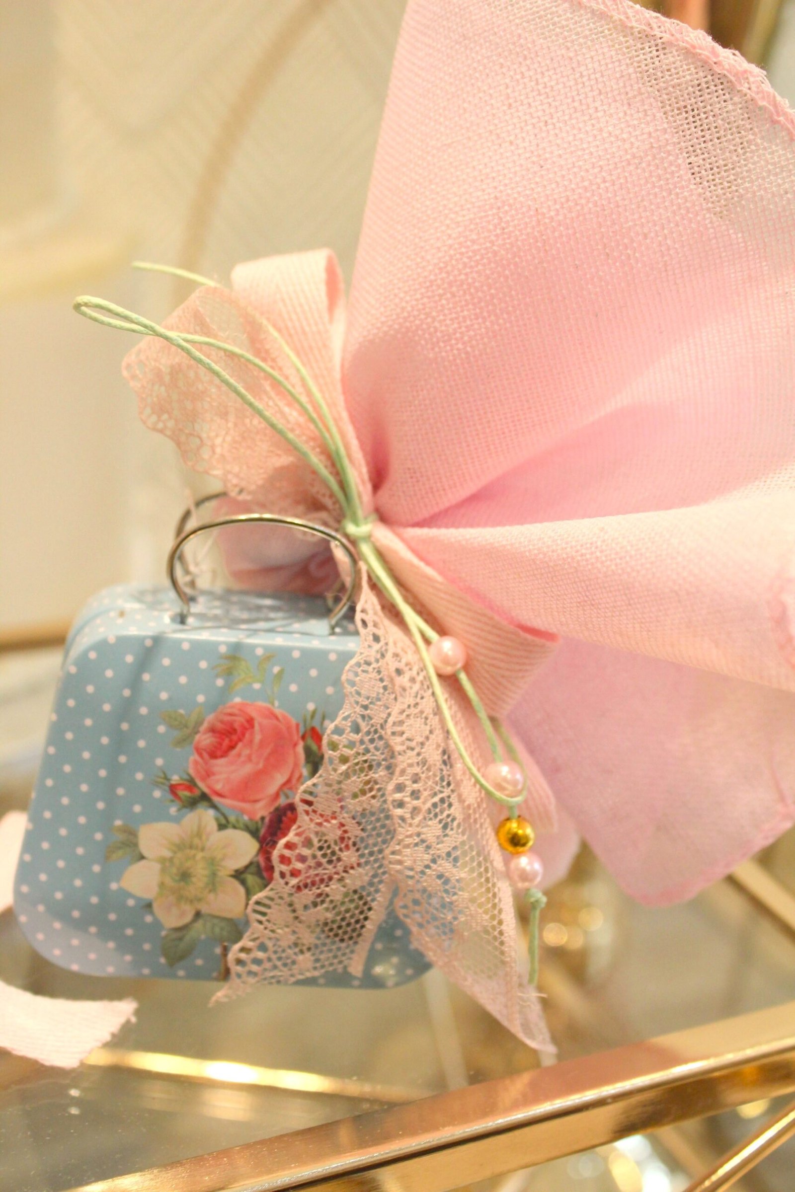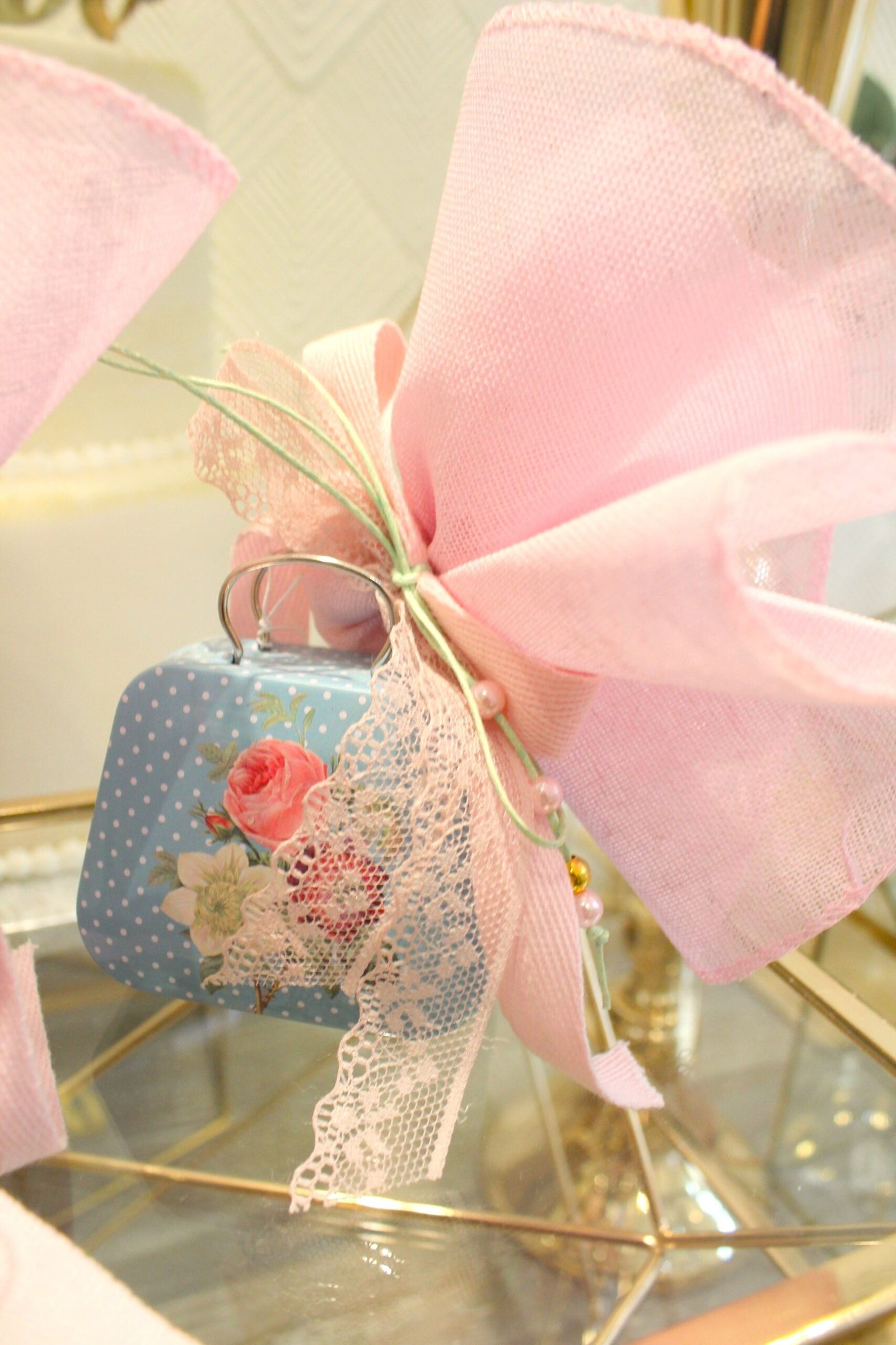 Περιλαμβάνει 5 κουφέτα αμυγδάλου, δεμένη με ποικιλία από κορδέλες.