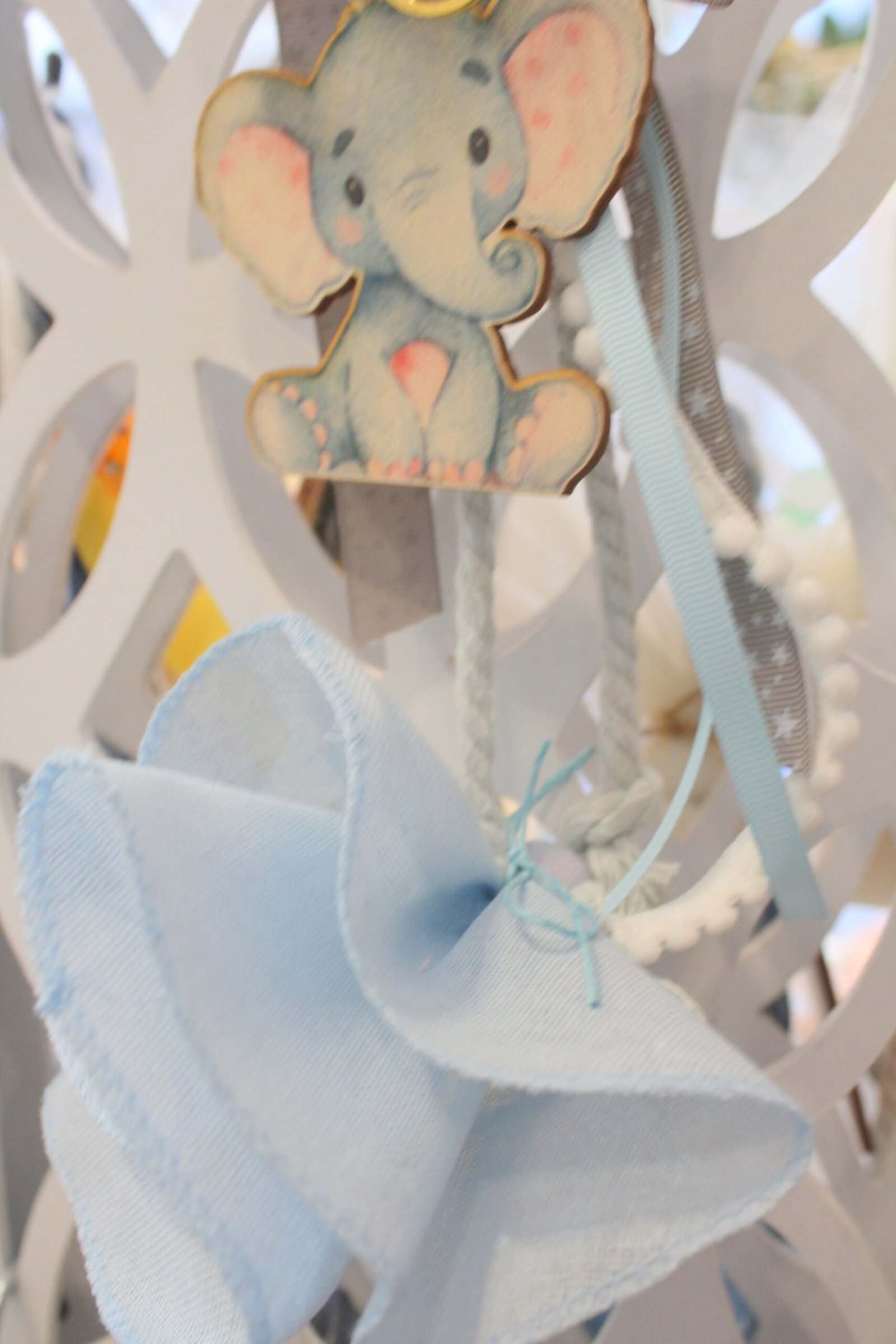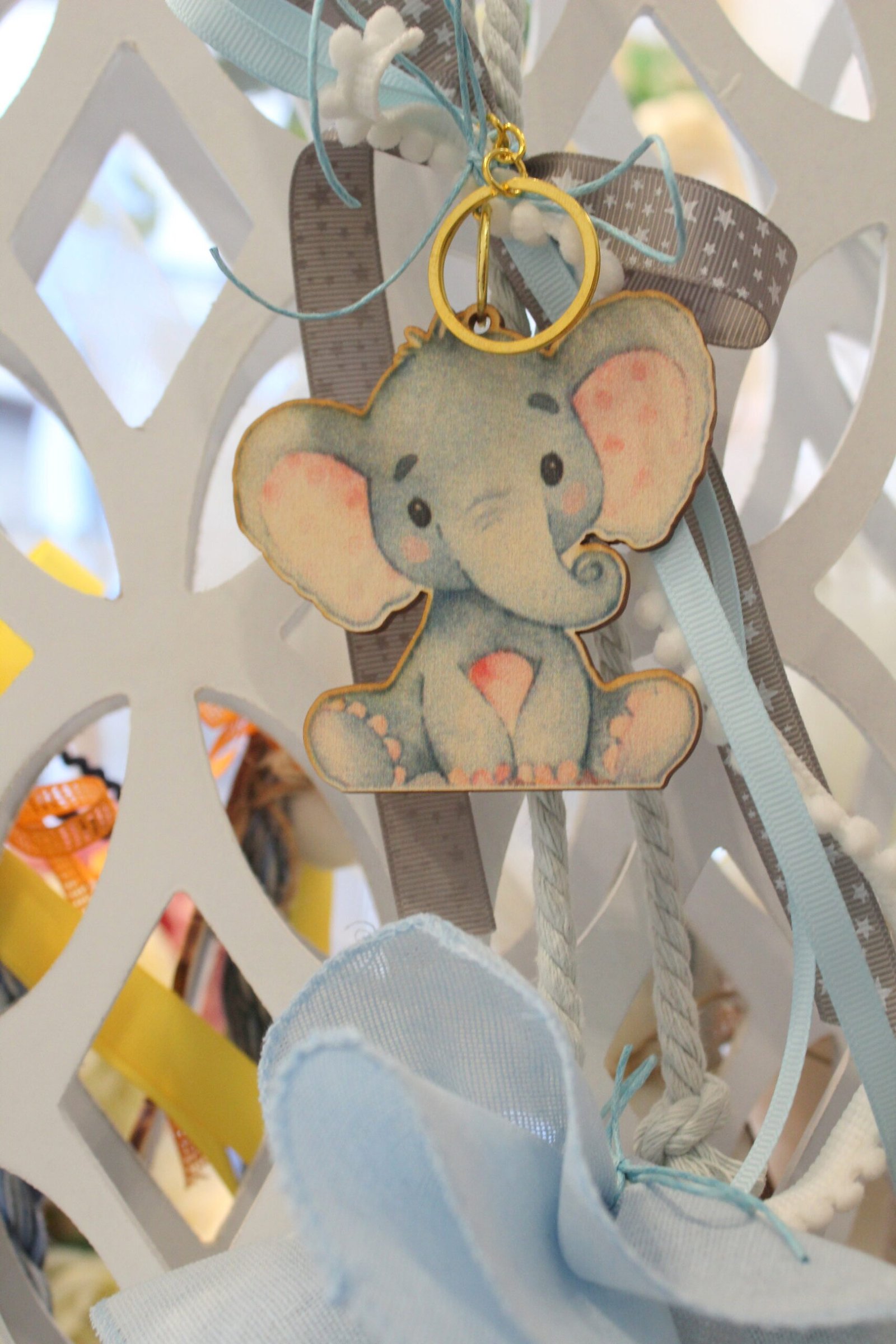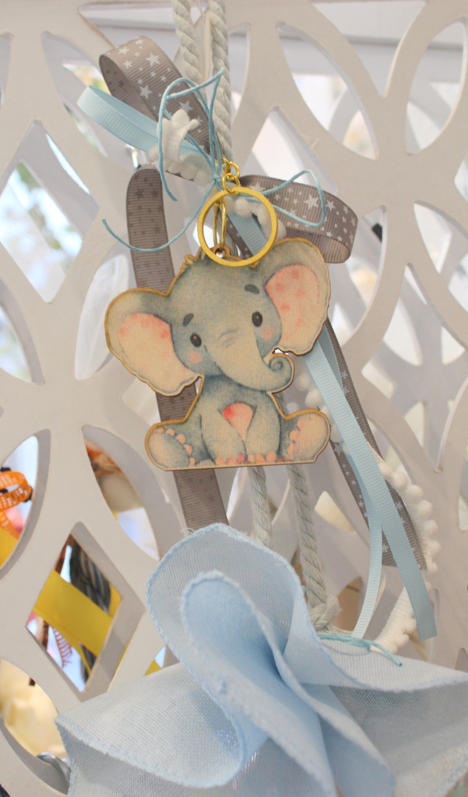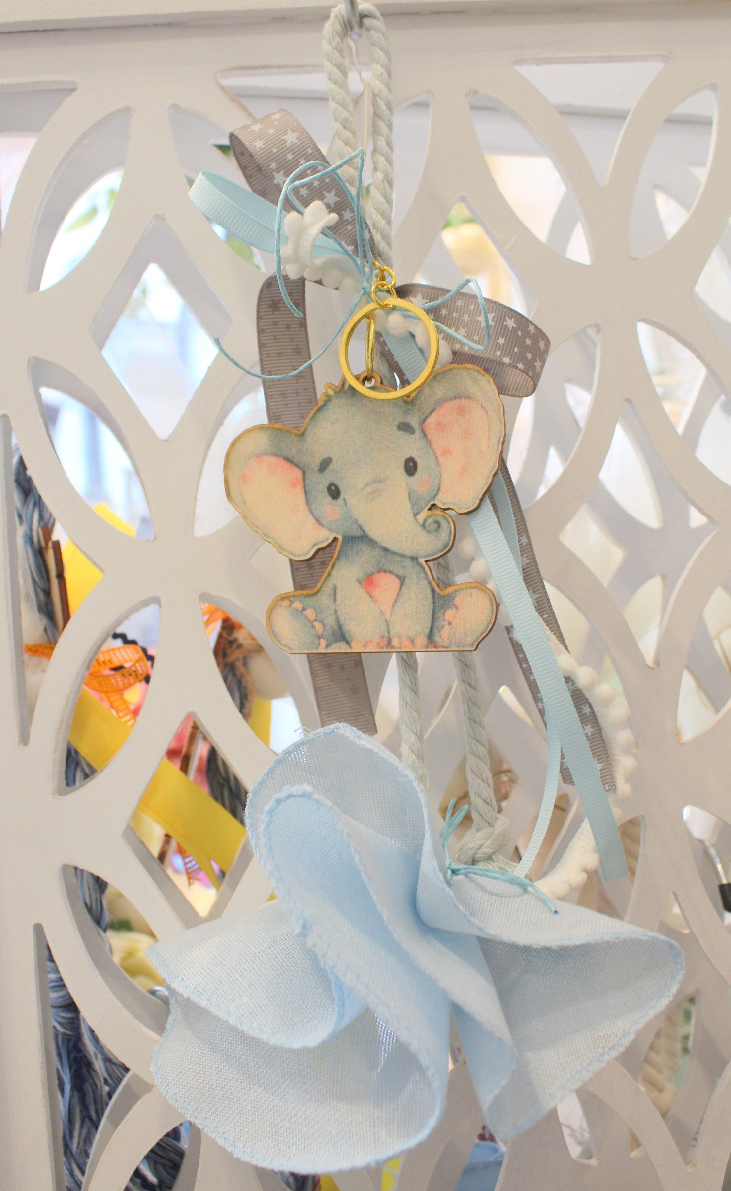 Διακοσμητική κρεμαστή μπομπονιέρα βάπτισης ελεφαντάκι με μπρελόκ