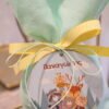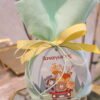 Μπομπονιέρα Βάπτισης λινό πουγκάκι βεραμάν με ξύλινο διακοσμητικό ζωάκια