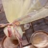 Μπομπονιέρα βάπτισης με ινδιάνικο θέμα, με δίχτυ τούλι σε διάφορα χρώματα ,δεμένη απο χρωματιστό πλεκτό κορδόνι πλεξίδα,φτερό χρωματιστό και μικρή φουντούλα.