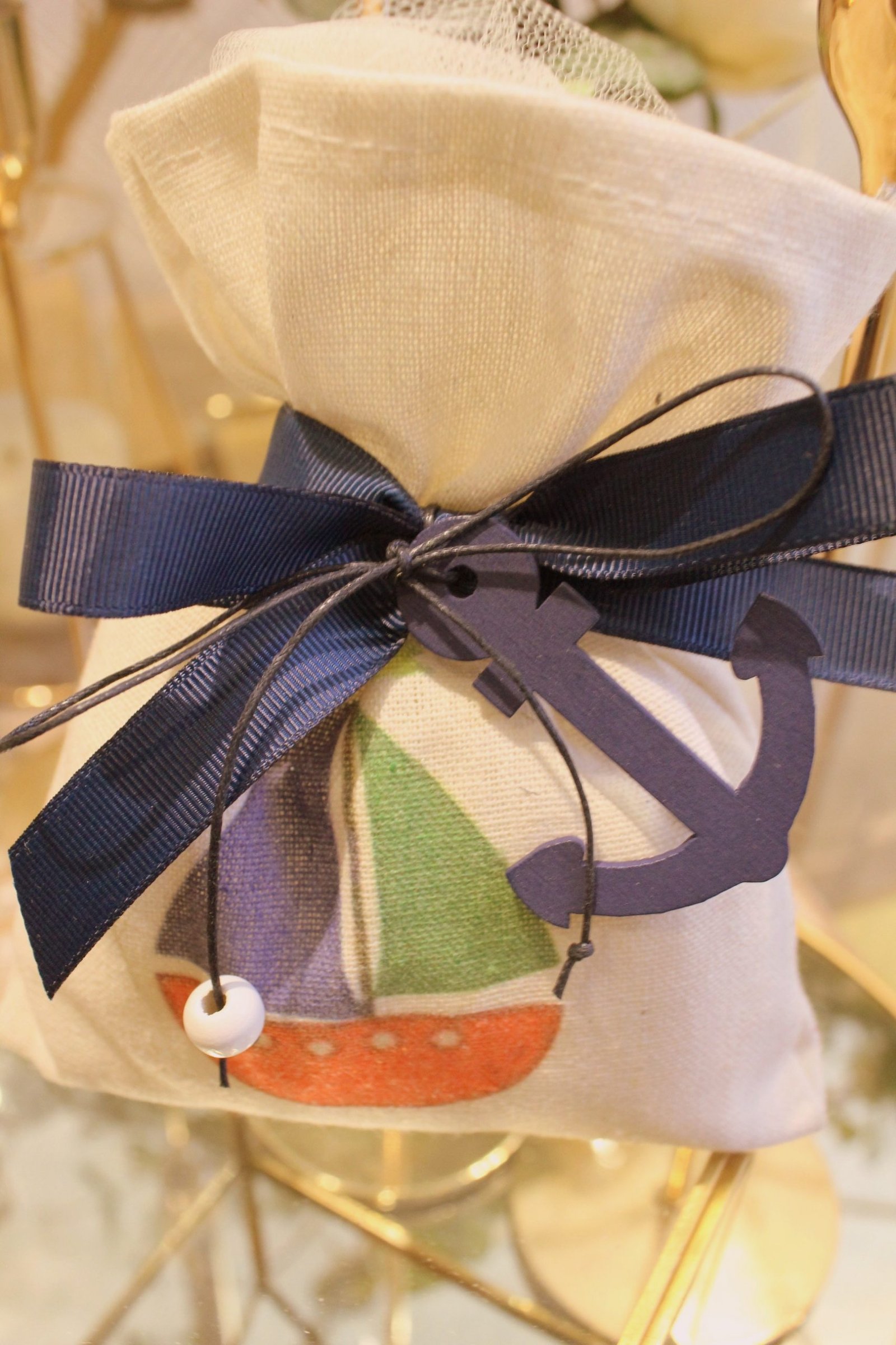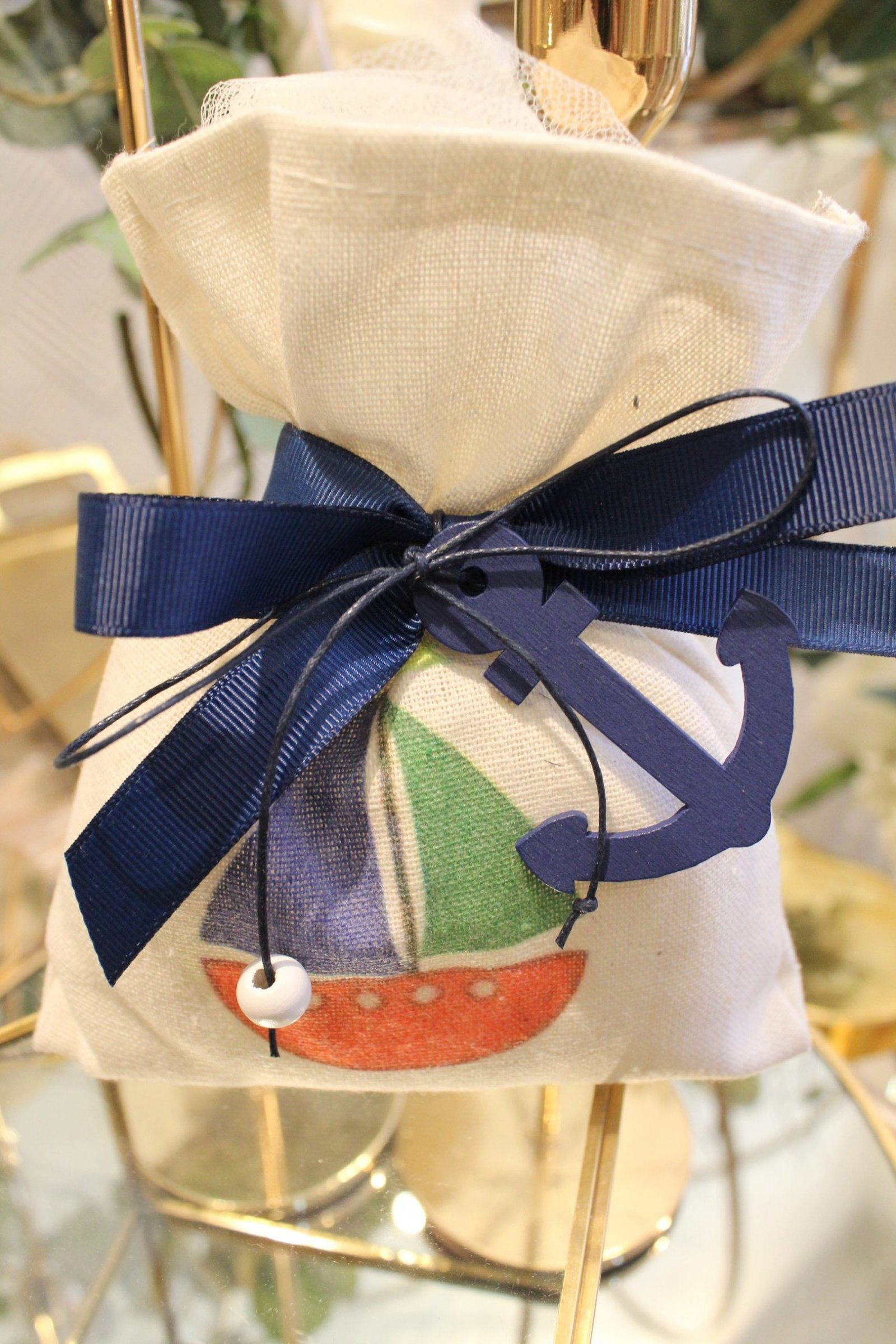 Μπομπονιέρα Βάπτισης καραβάκι πουγκάκι.