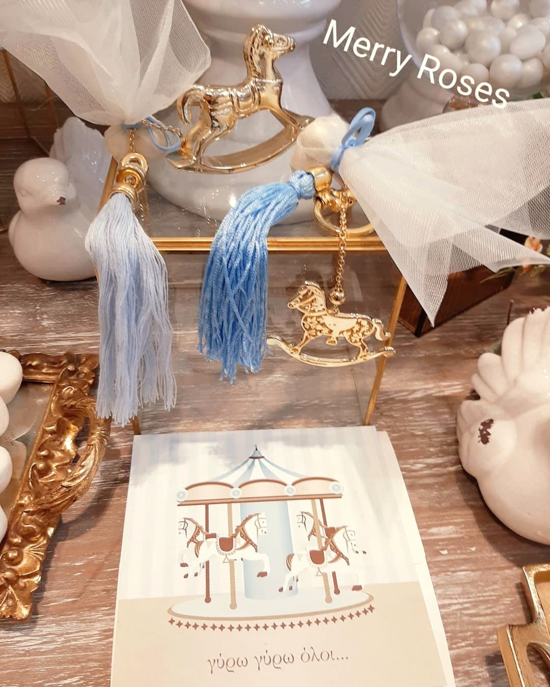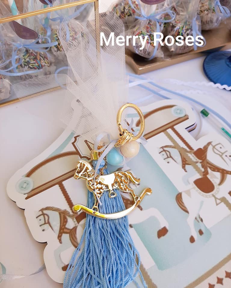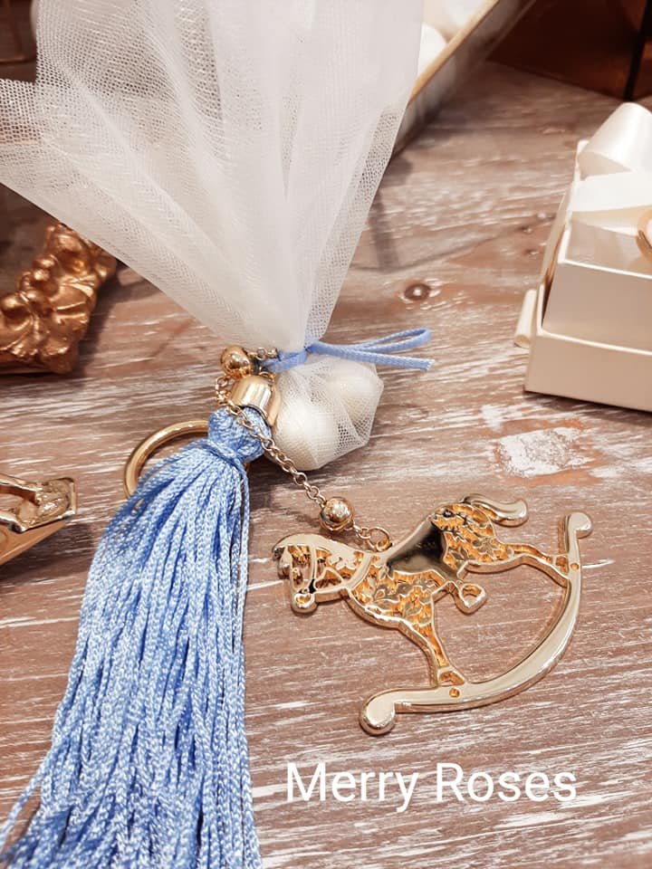 Μπομπονιέρα βάπτισης luxury χρυσό καρουζέλ κόσμημα ,μπρελόκ μαζι με φούντα και αλυσιδάκι
