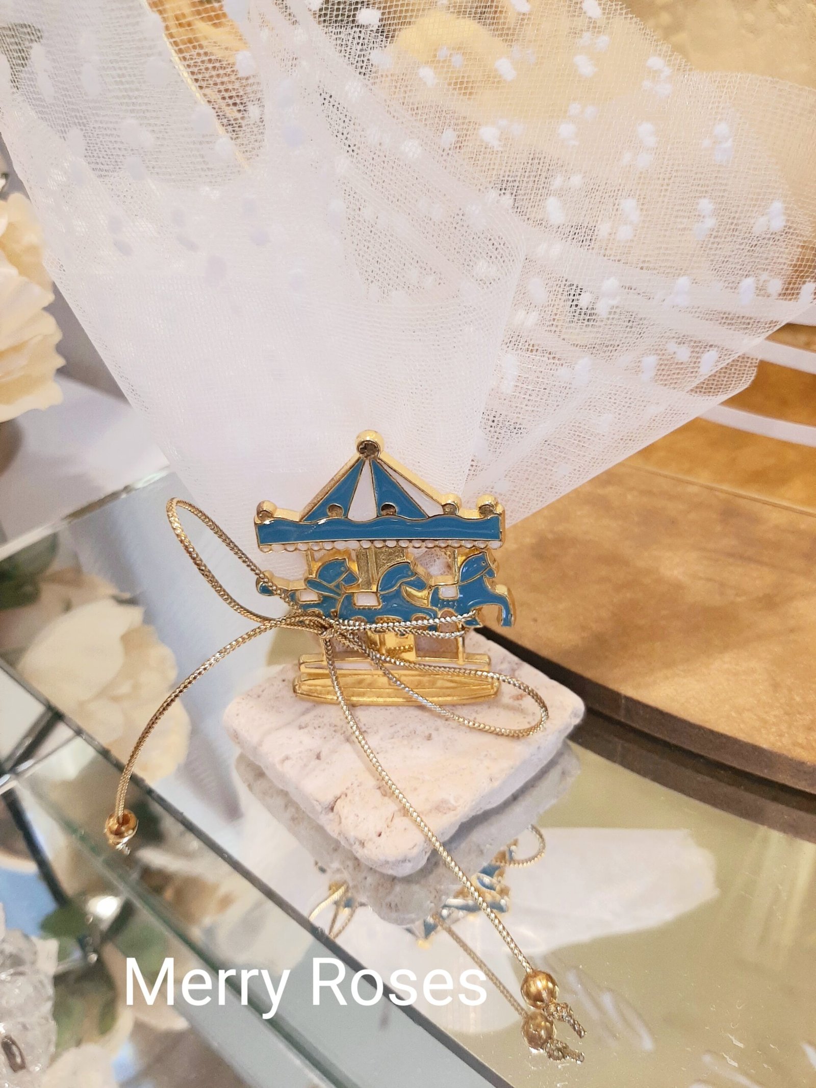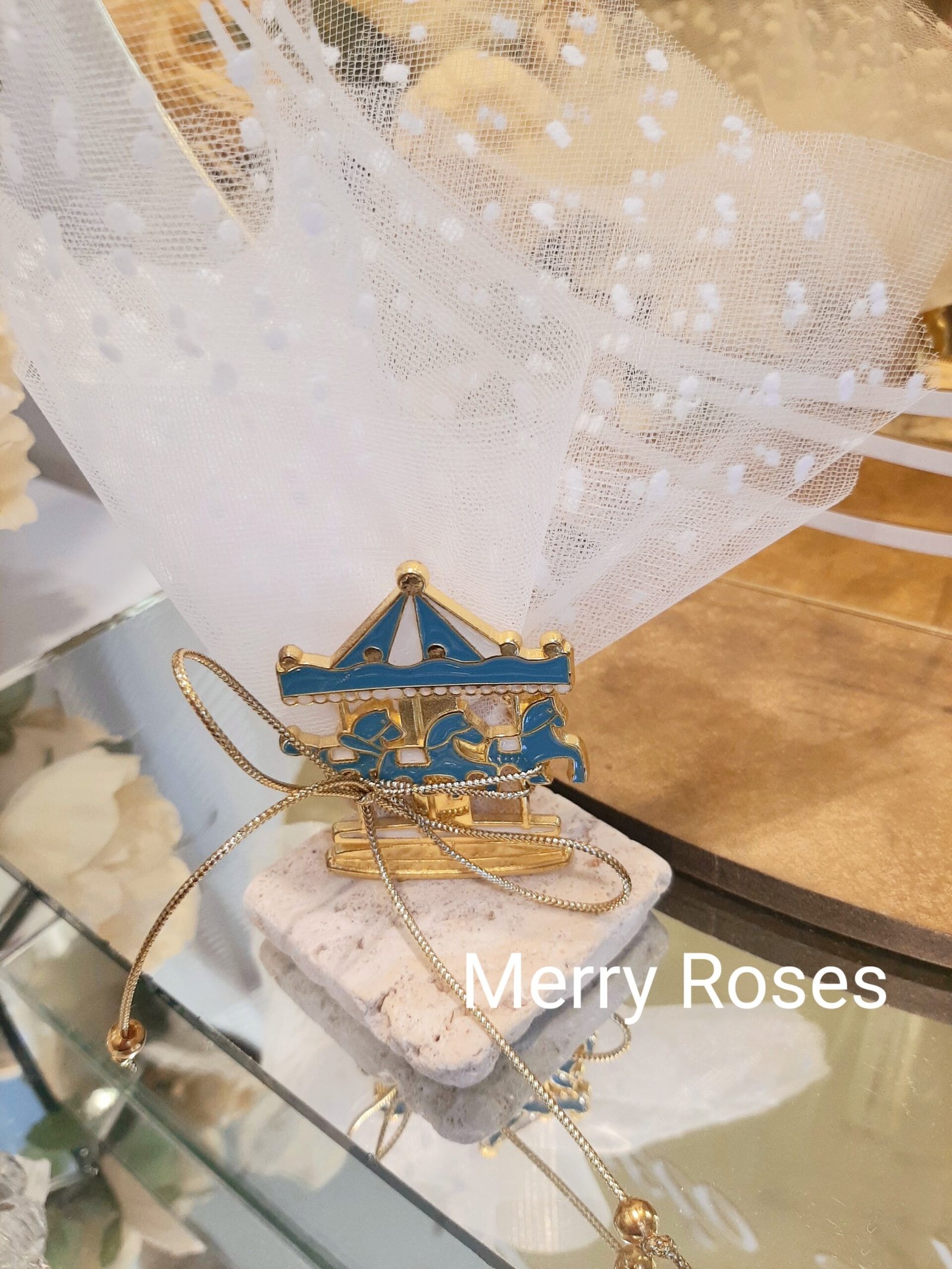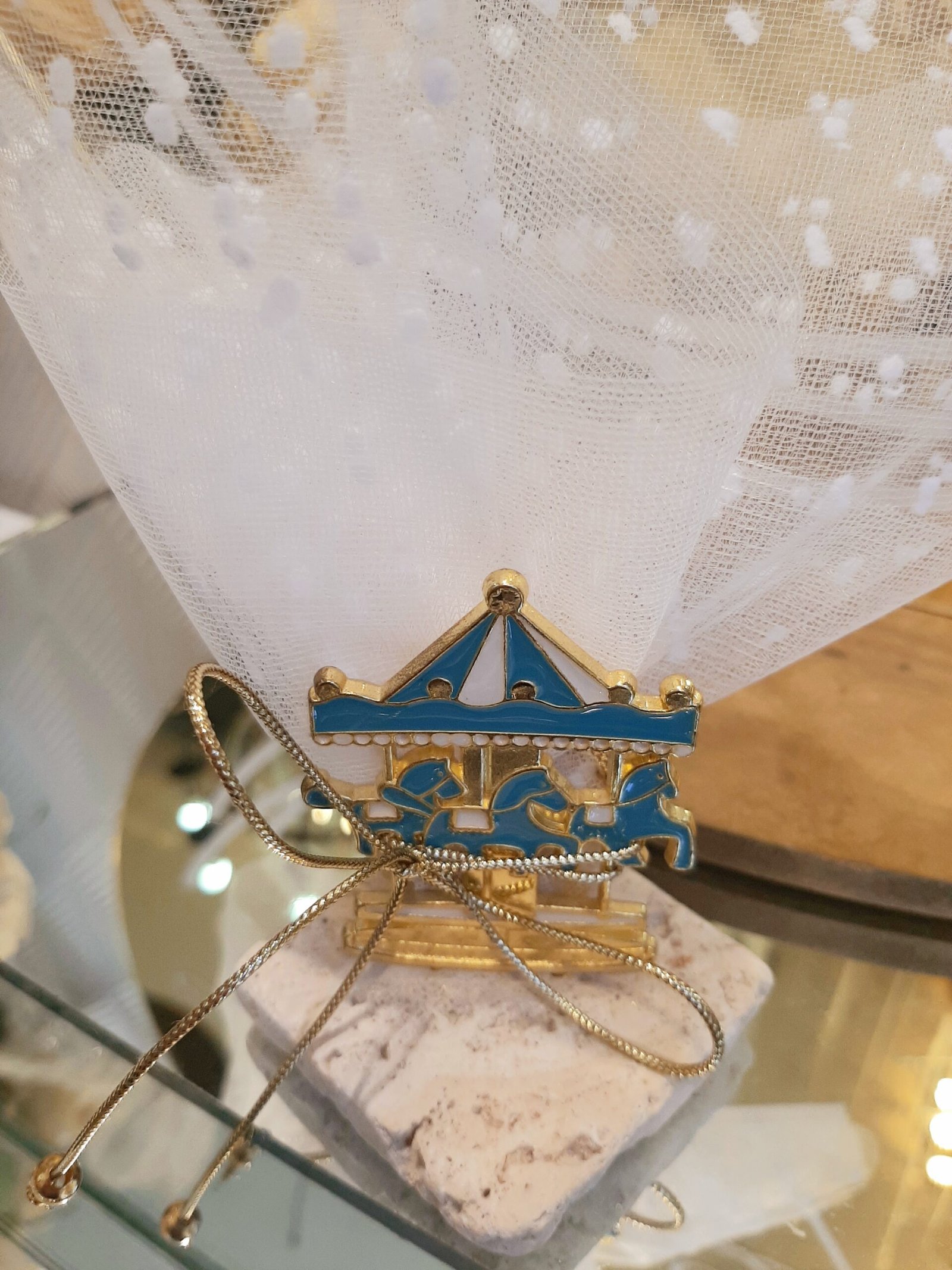 Μπομπονιέρα βάπτισης μεταλλικό χρυσό καρουζέλ με σμάλτο.