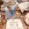 Μπομπονιέρα βάπτισης καρουζέλ χρυσό μεταλλικό με φούντα και κόσμημα αλυσιδάκι
