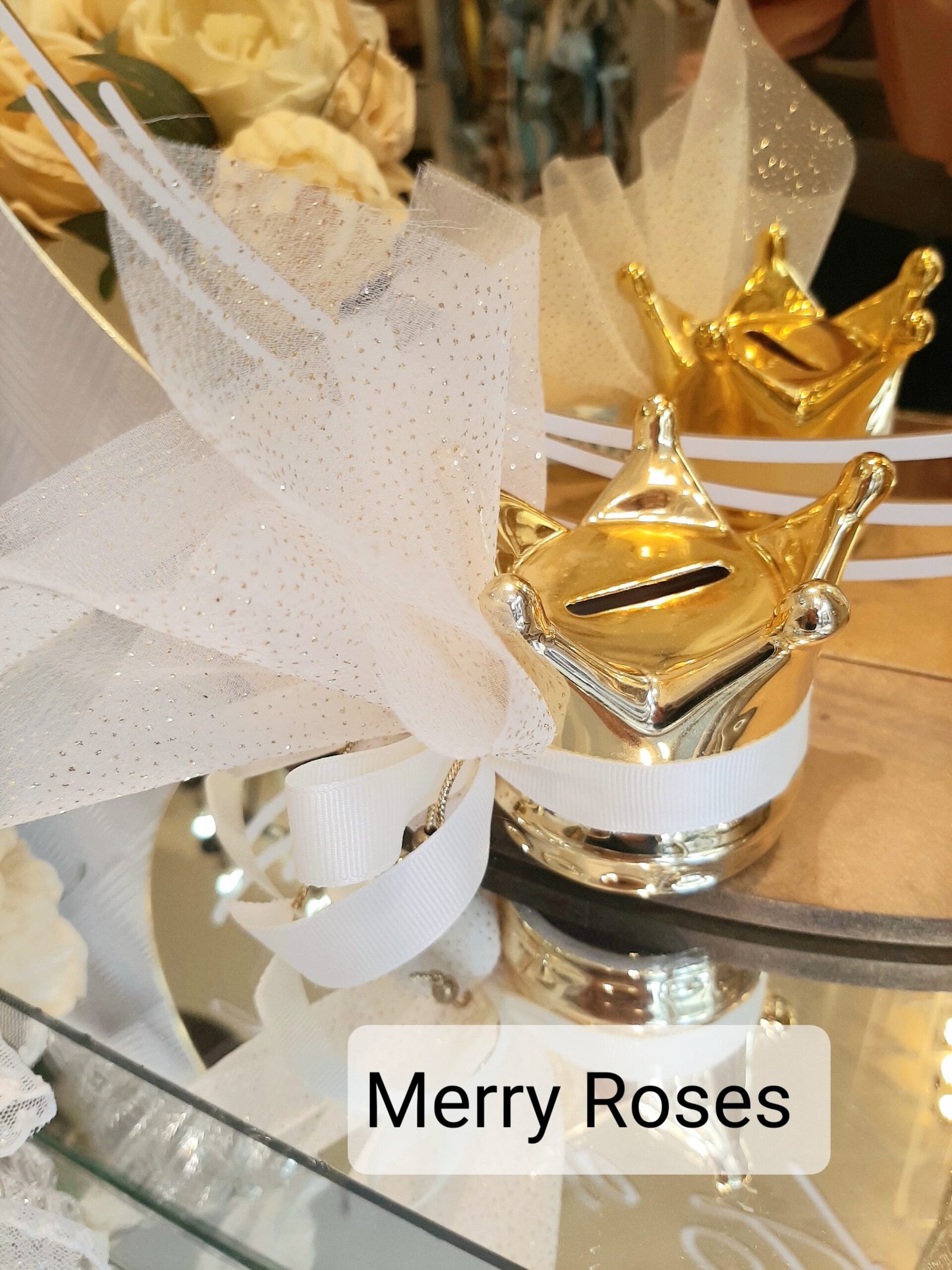 Μπομπονιέρα βάπτισης χρυσή ορώνα κουμπαράς κεραμικός 8 *8 εκ