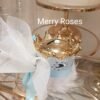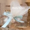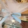Δεμένη με ιριδίζον γλίτερ τούλι χρυσό, σιέλ γκρό κορδέλα ,χρυσό κορδόνι με χρυσές πέτρες.