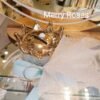 Κεραμικός κουμπαράς σιέλ- χρυσό