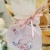 Περιλαμβάνει 5 κουφέτα αμυγδάλου ,δεμένη με ποικίλια απο κορδέλες.