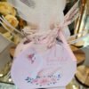 Χάρτινο οβάλ βαλιτσάκι print με θέμα κύκνο σε ροζ αποχρώσεις. Ο κύκνος φοράει στεφάνι από λουλούδια και κορώνα .