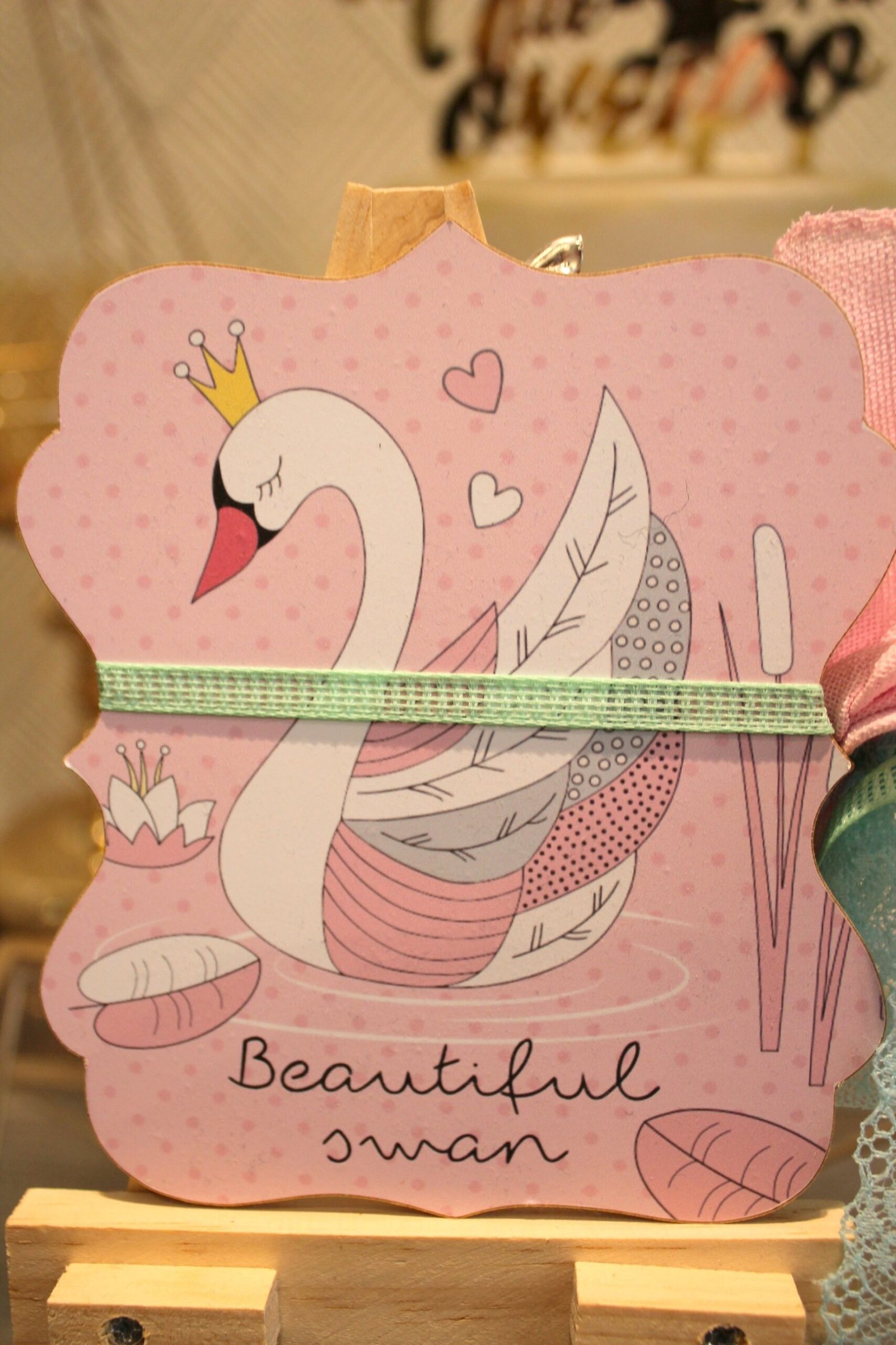 Ξύλινο καδράκι κύκνος σε natural καβαλέτο.