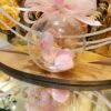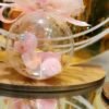 Μπομπονιέρα Βάπτισης με ρόζ ή λευκό ξύλινο κυκνάκι,μέσα σε πλέξιγκλας μπάλα 10 εκ ,μαζί με κινούμενα πον-πον και χρυσά αστεράκια.