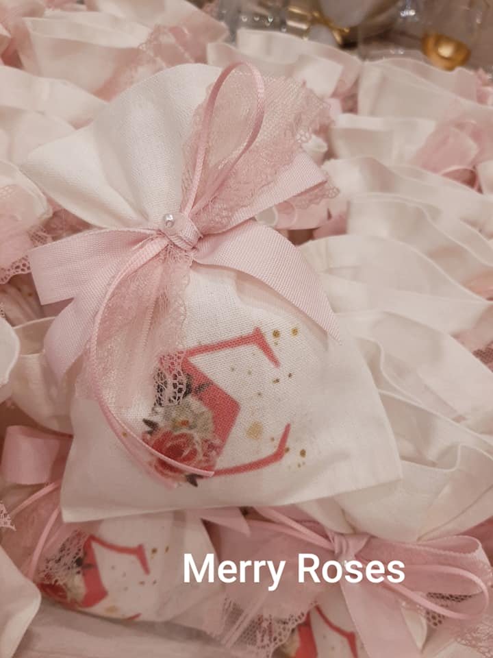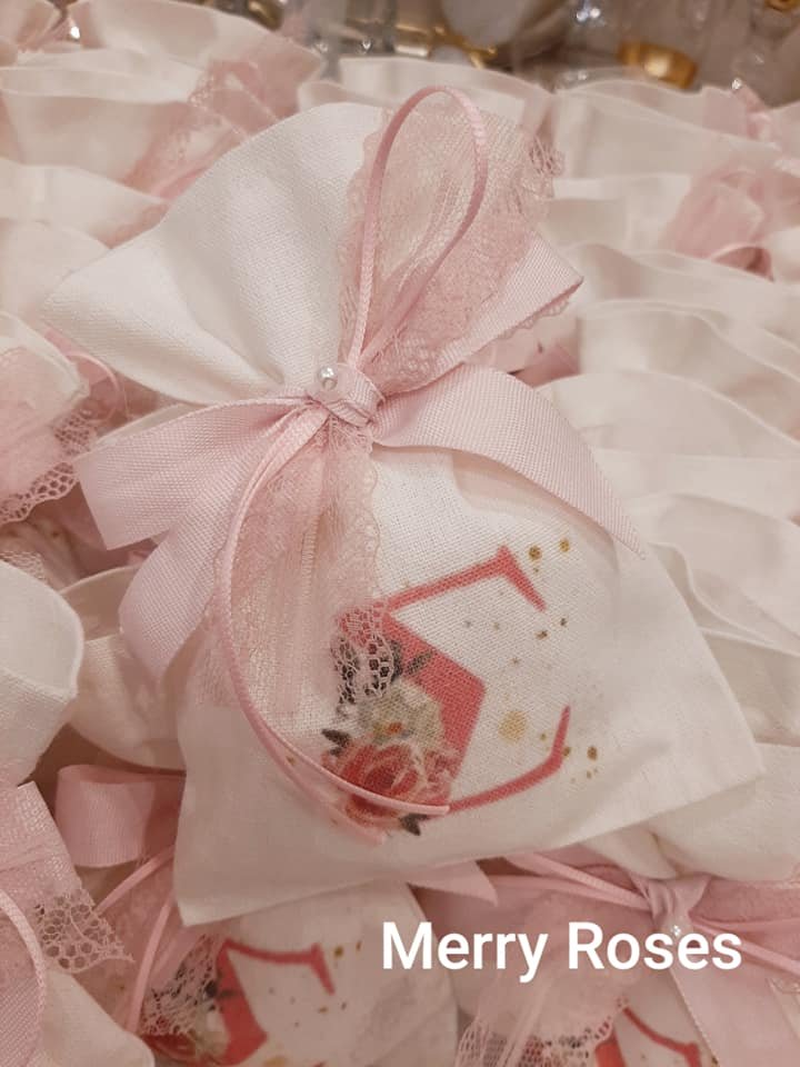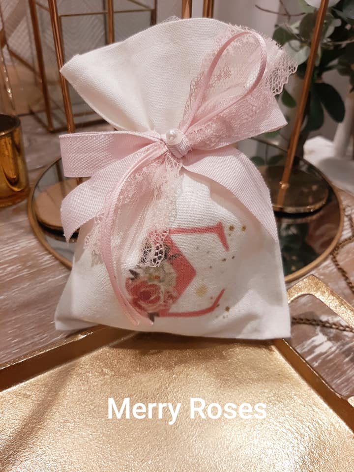 Βαμβακερό πουγκί με κορδέλες και μονόγραμμα