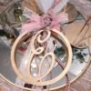 Μπομπονιέρα Βάπτισης κρεμαστή ξύλινη διακοσμητική με μονόγραμμα και λουλούδι