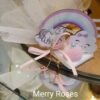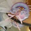 Μπομπονιέρα βάπτισης Μονόκερος 12 εκ με ουράνιο τόξο ,πον-πον και πέρλα πανω σε πέτρινη βάση 5 × 5 εκ.