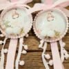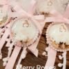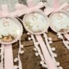 Μπομπονιέρα Μπαλαρίνα με μπαλίτσα διακοσμητικη κρεμαστή ,μαζι με χρυσά αστεράκια και πον-πον.