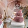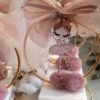 Μπομπονιέρα Μπαλαρίνα σε πέτρινη βάση με χρυσό διακοσμητικό στεφάνι και πον -πον.