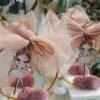 Δεμένο με τούλινο γκλίτερ φιόγκο και κορδελίτσες.