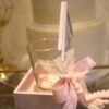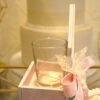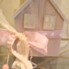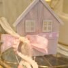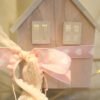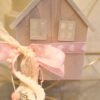 Ξύλινο διακοσμητικό σπιτάκι σε ροζ brush απόχρωση. Στο πίσω μέρος υπάρχει γυάλινο ποτηράκι για ρεσό.