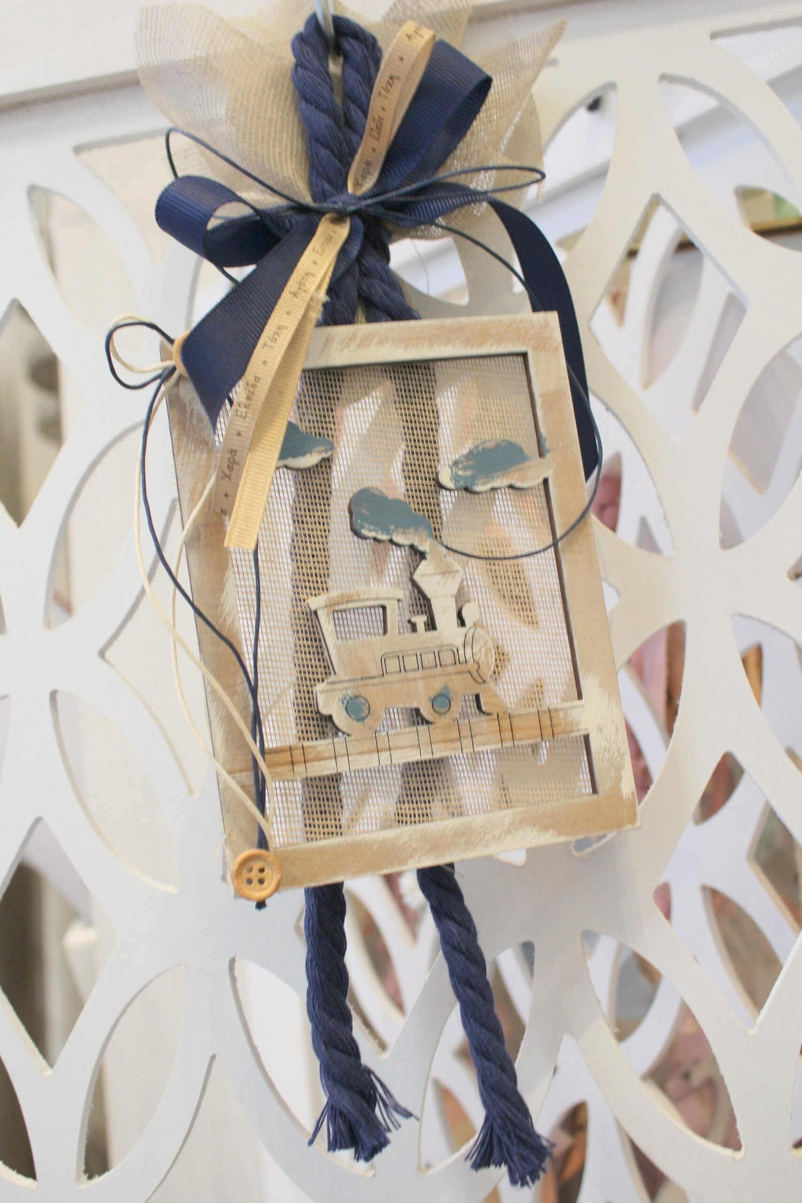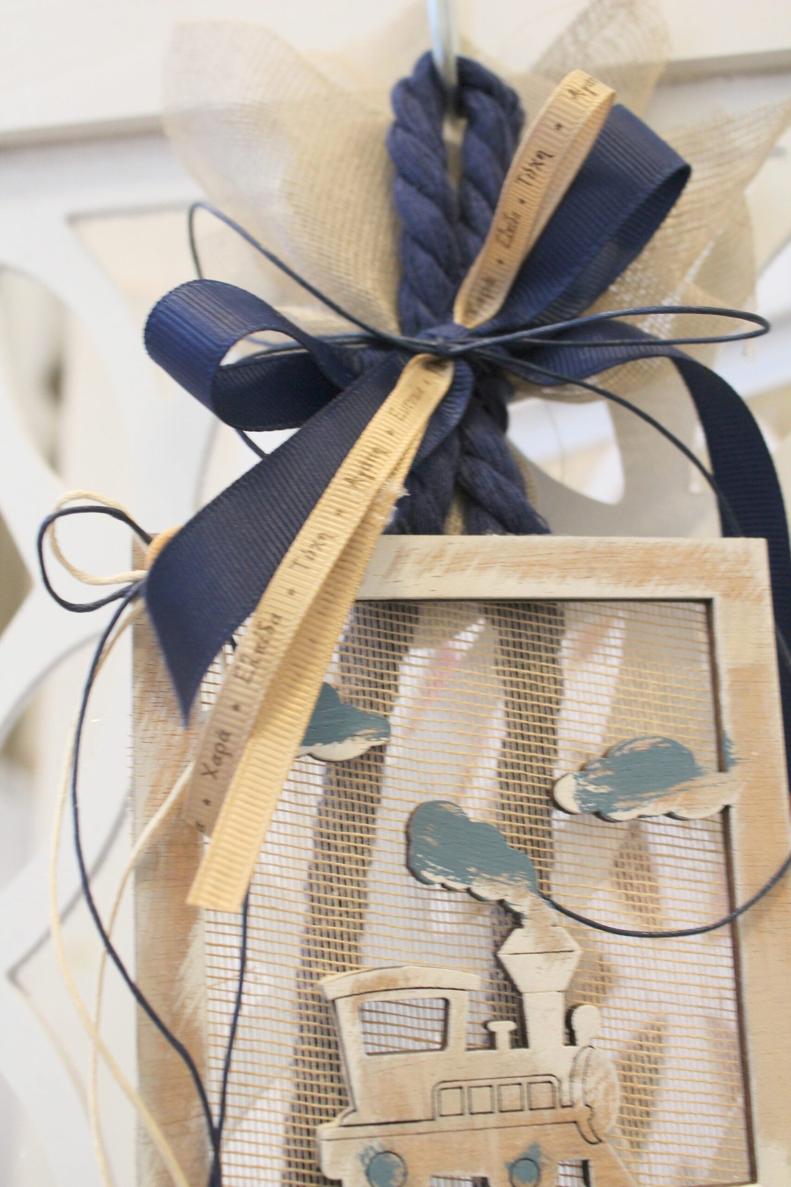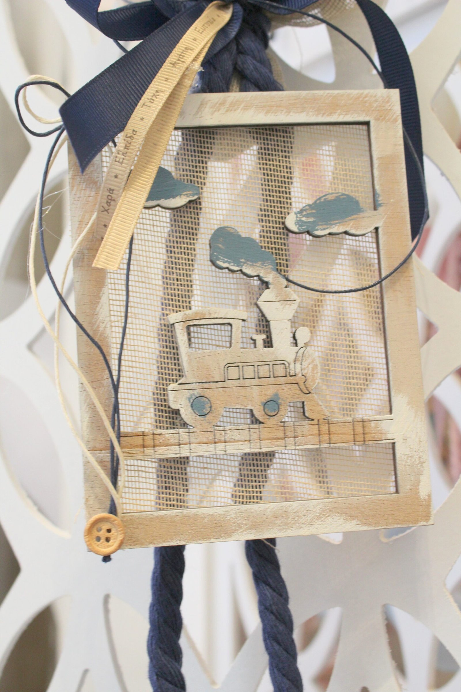 Μπομπονιέρα βάπτισης ξύλινο καδράκι με τρενάκι