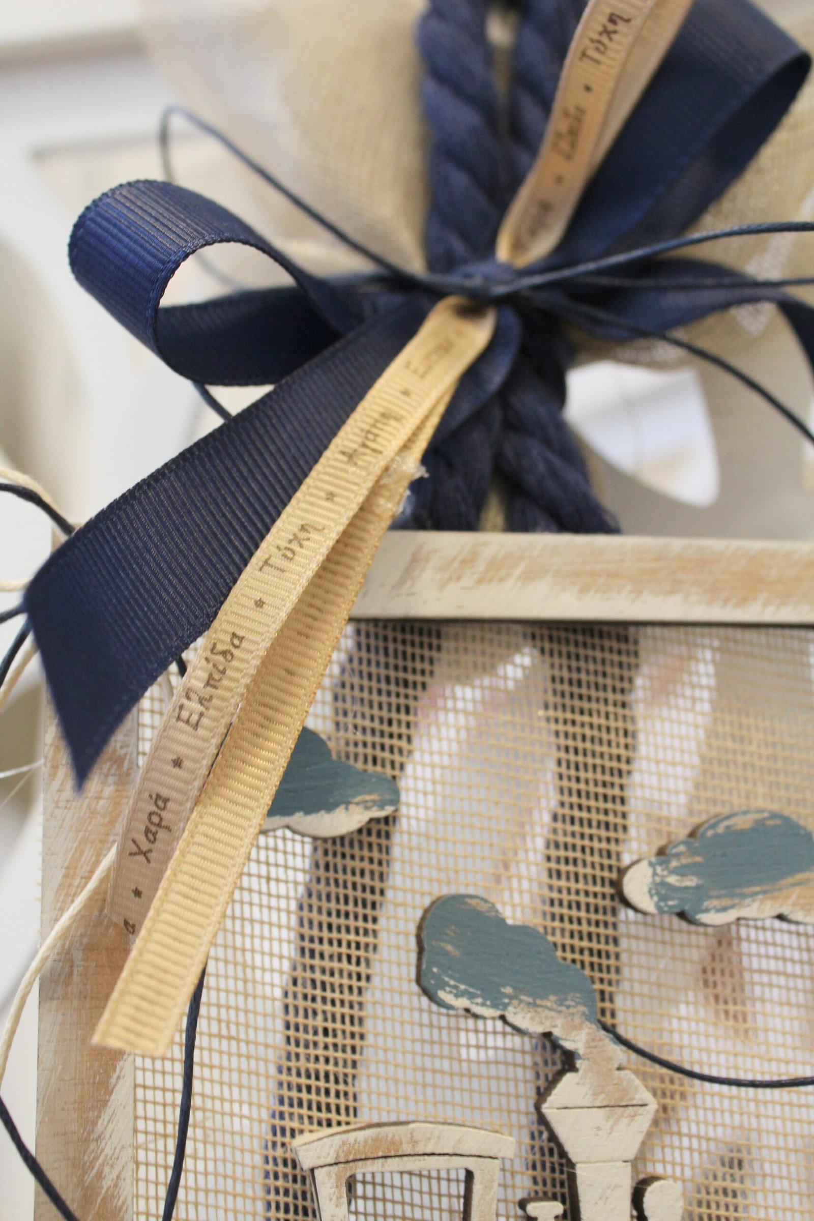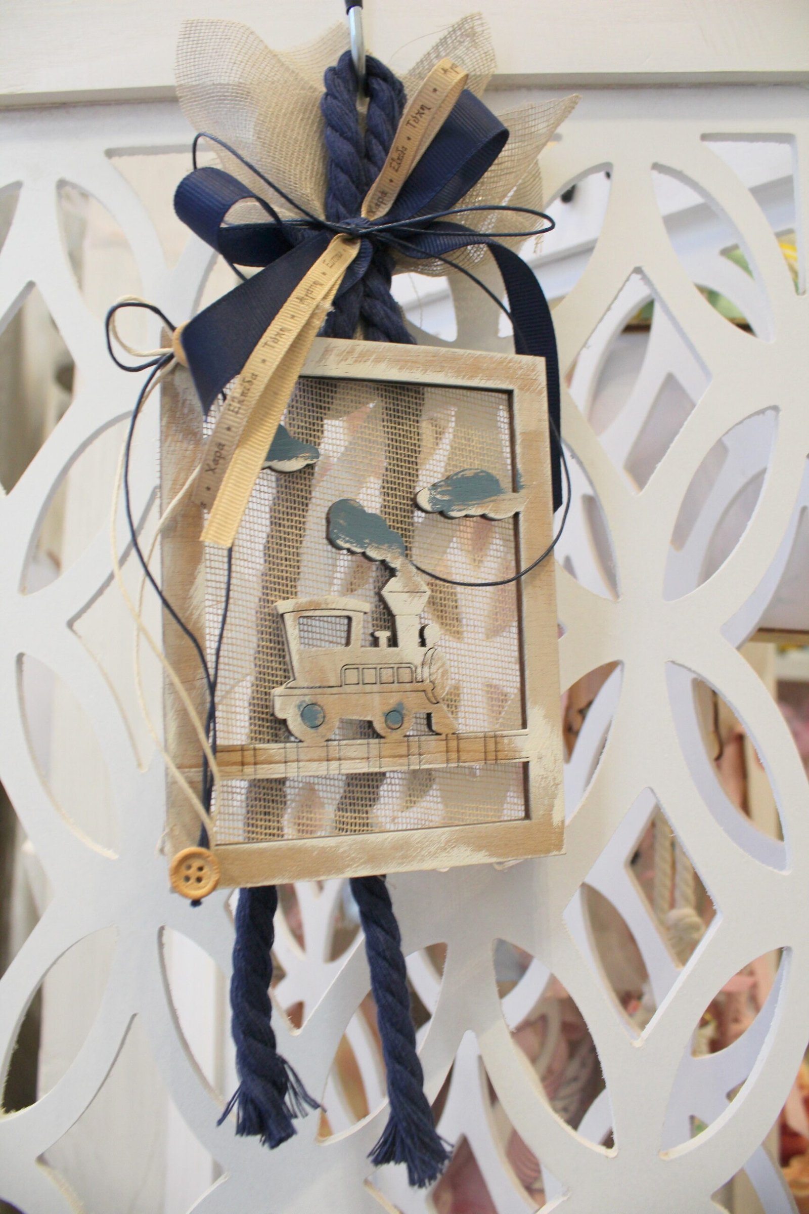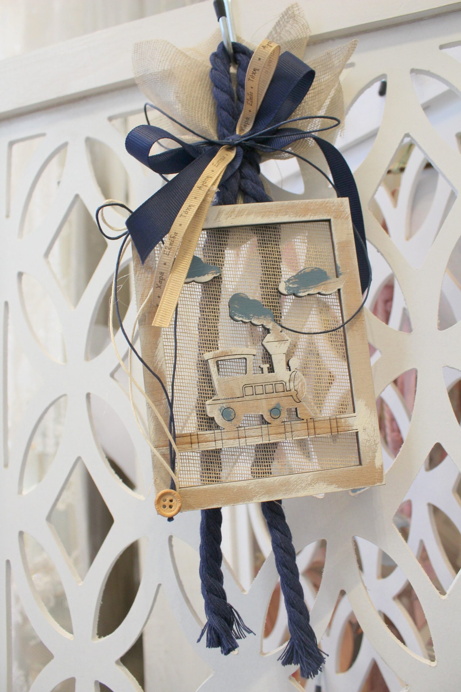 Μπομπονιέρα βάπτισης ξύλινο καδράκι με τρενάκι
