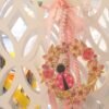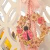 Κρεμαστή διακοσμητική μπομπονιέρα πασχαλίτσα με στεφανάκι 12 εκ Δεμένη με ποικιλία απο κορδέλες Περιλαμβάνει 5 κουφέτα αμυγδάλου Ελάχιστη ποσότητα 50 τμχ