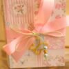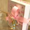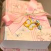 Μπομπονιέρα βάπτισης χρυσή πεταλούδα κόσμημα σε κουτί κασετίνα floral δεμένο με κορδέλες και πέρλες