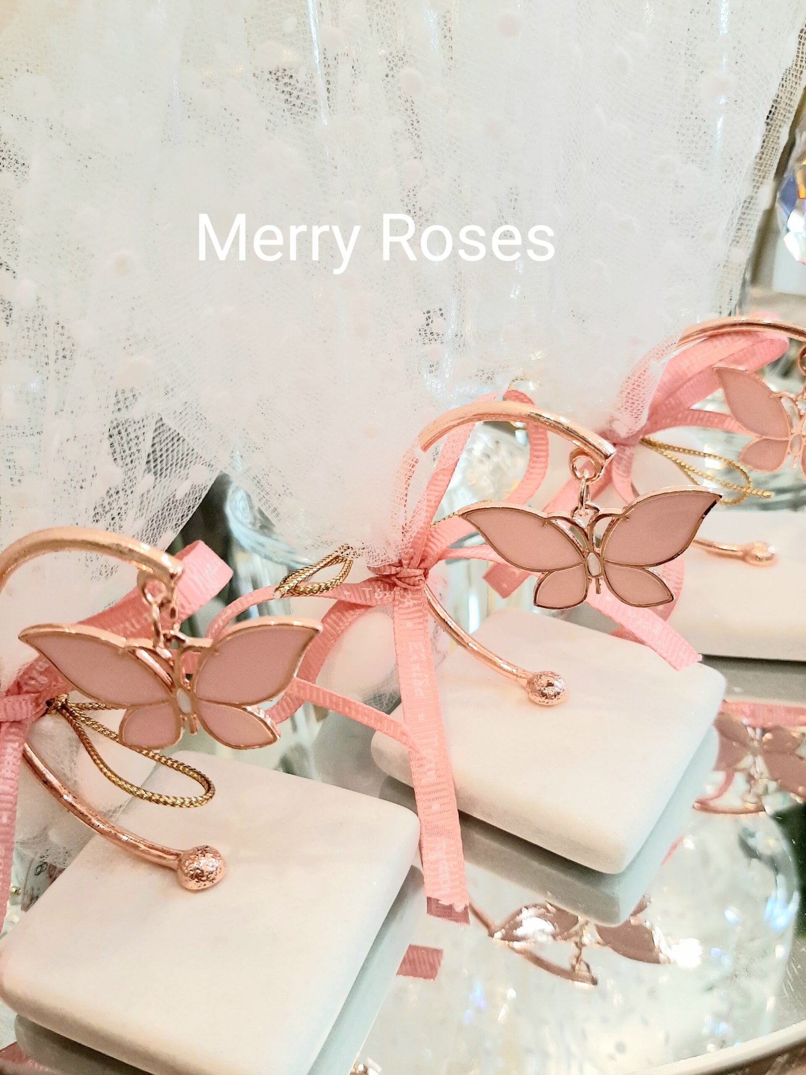 Μπομπονιέρα βάπτισης πεταλούδα διακοσμητική απο σμάλτο ,κρεμαστή σε χρυσό στεφανάκι με πέτρινη βάση.