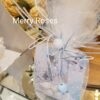 Μπομπονιέρα Βάπτισης Σουβέρ με Μονόγραμμα , πουά τούλι,πον-πον και γαλάζια χάντρα.