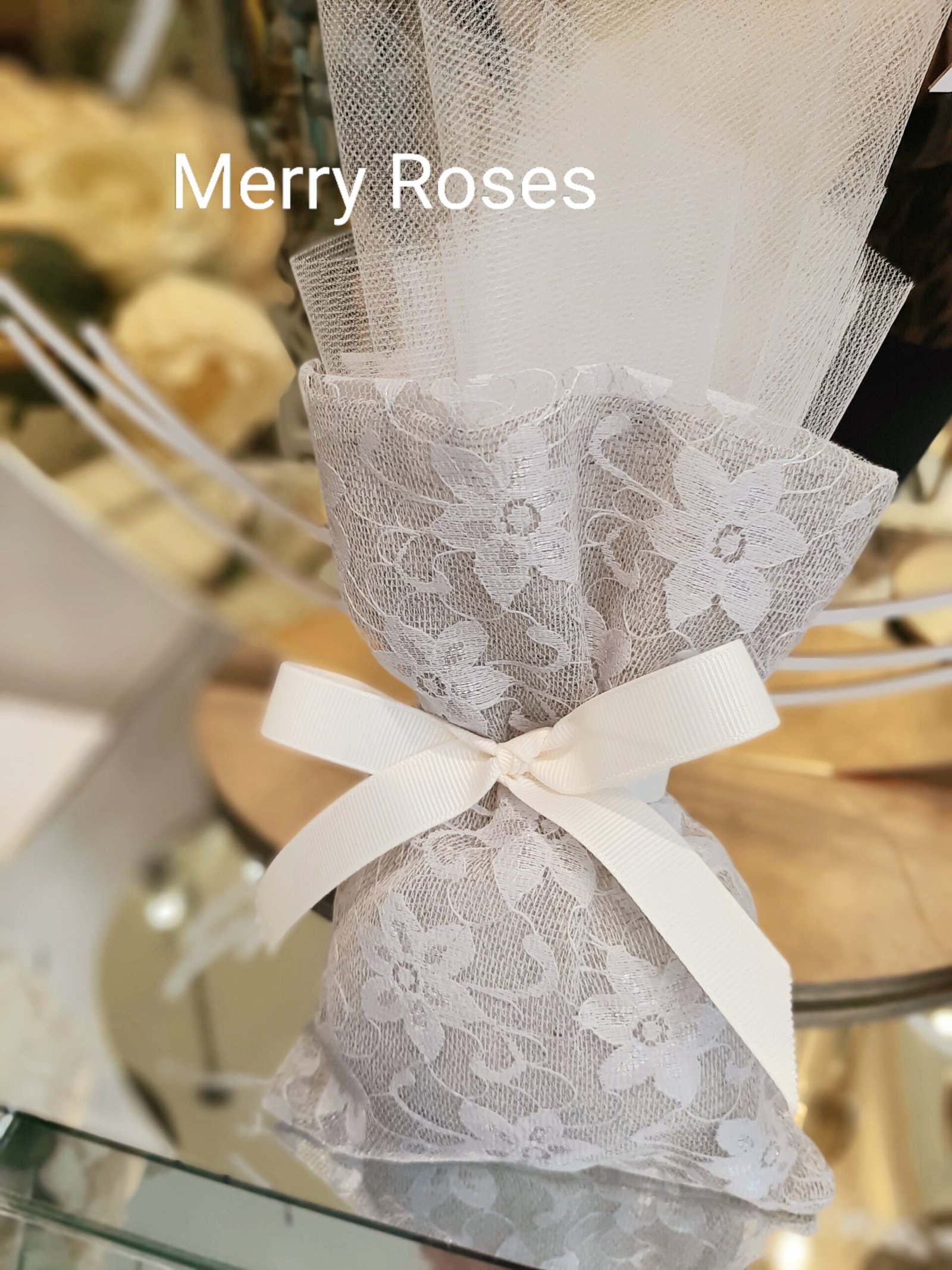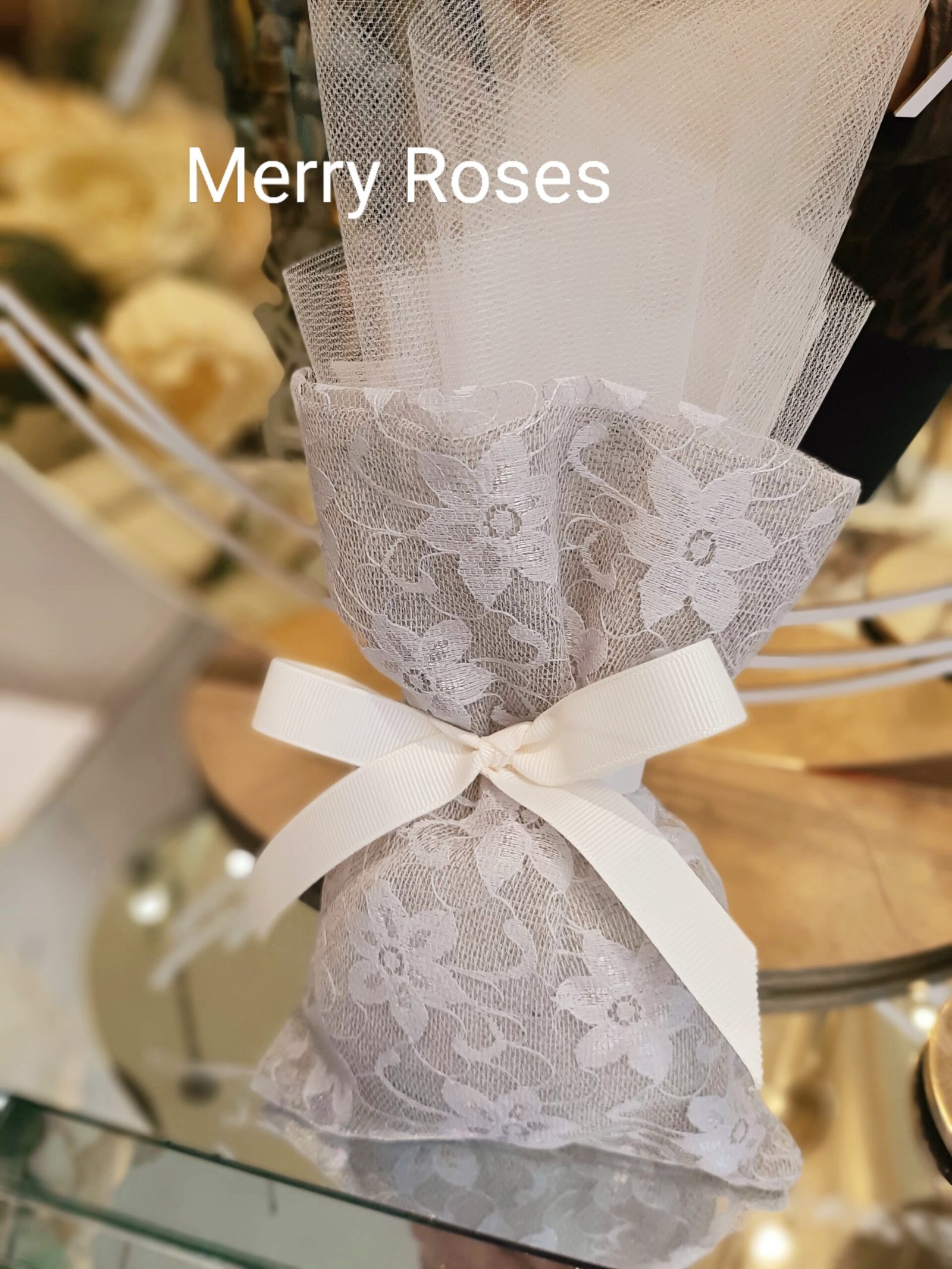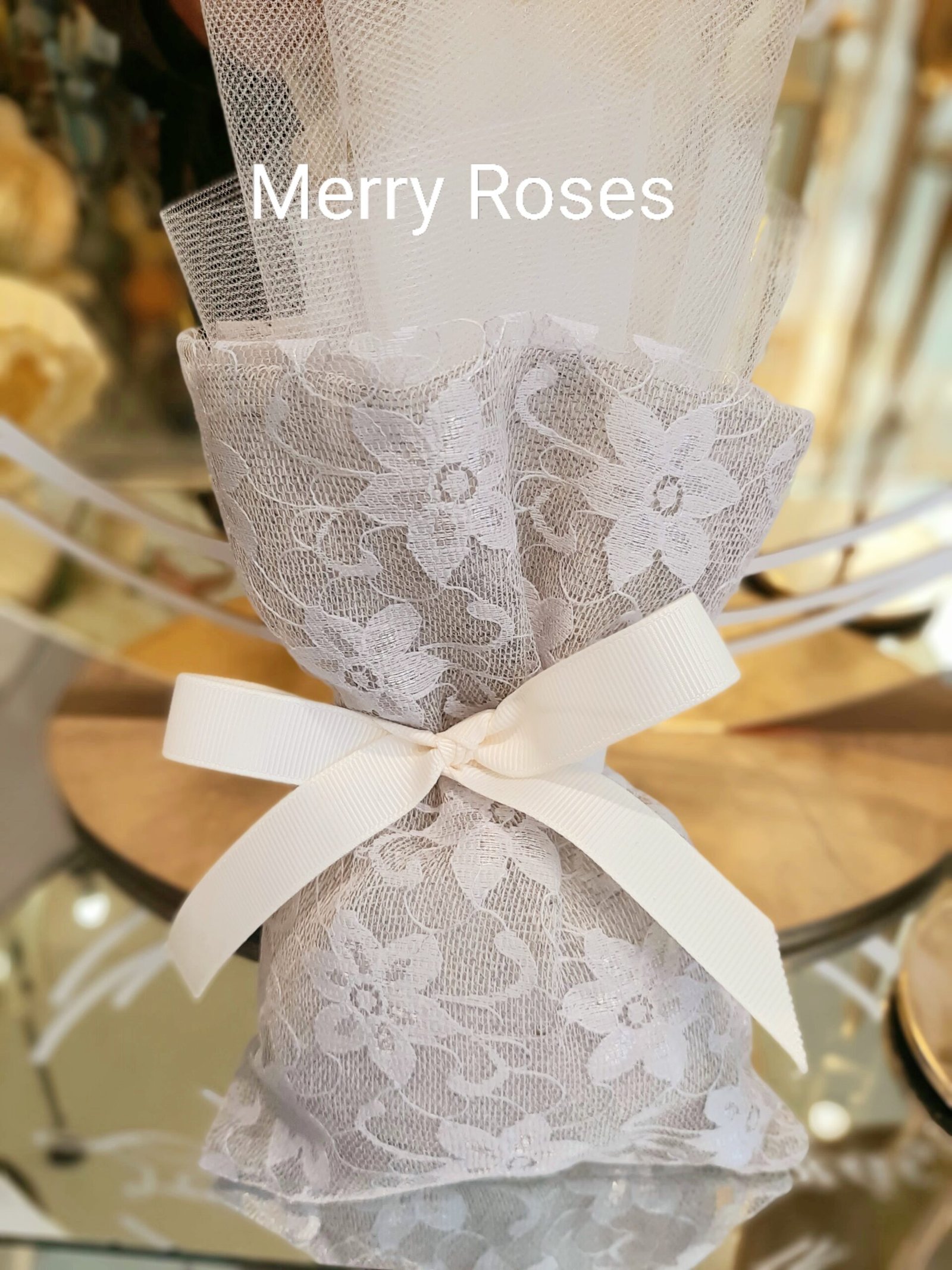 Δεμένη με γκρό κορδέλα ιβουάρ,λευκό εσωτερικό τουλι.