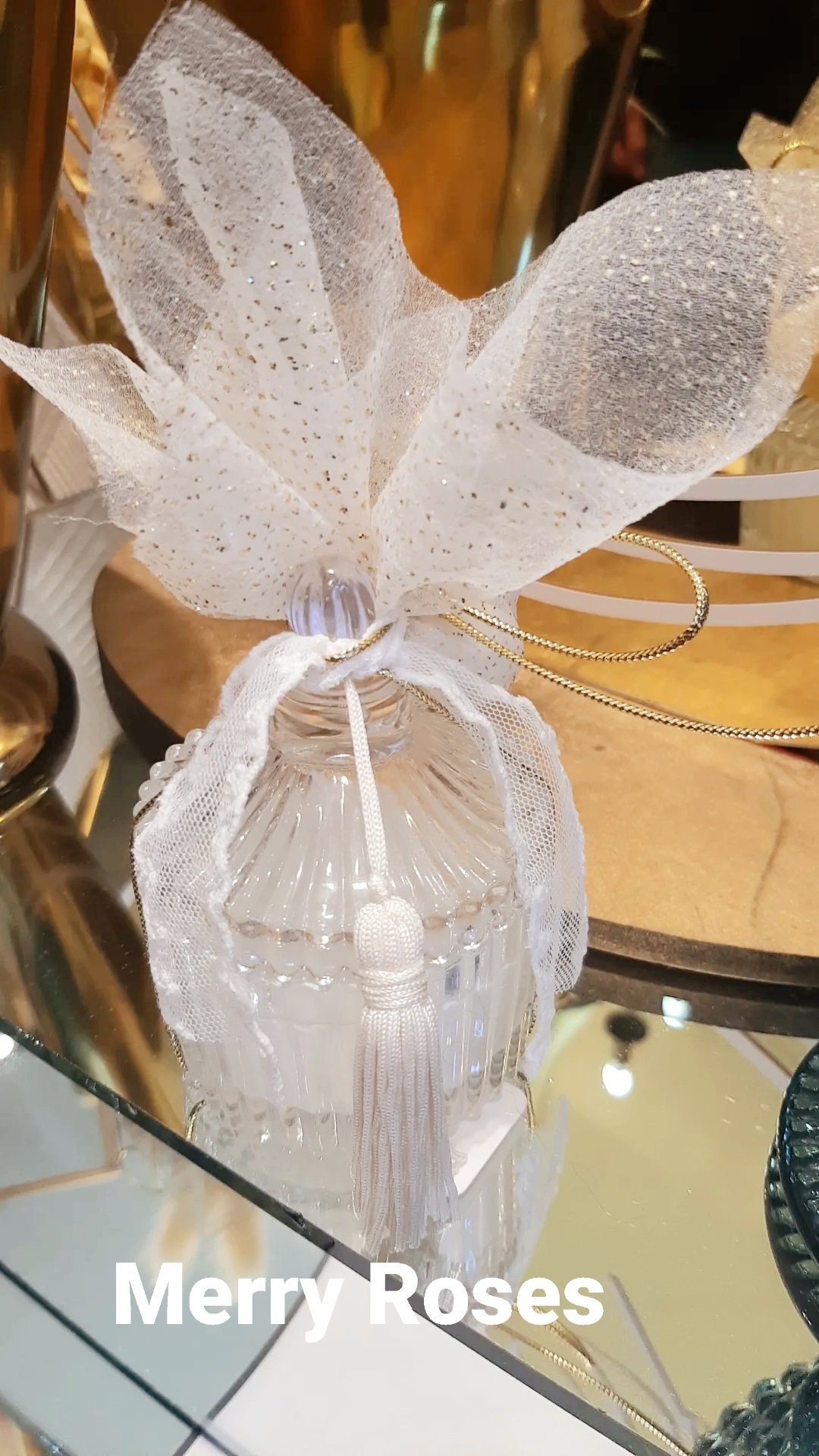 Δεμένη με χρυσό κορδόνι ,τούλινη δαντέλα και διακοσμητική φούντα.