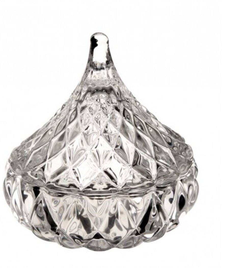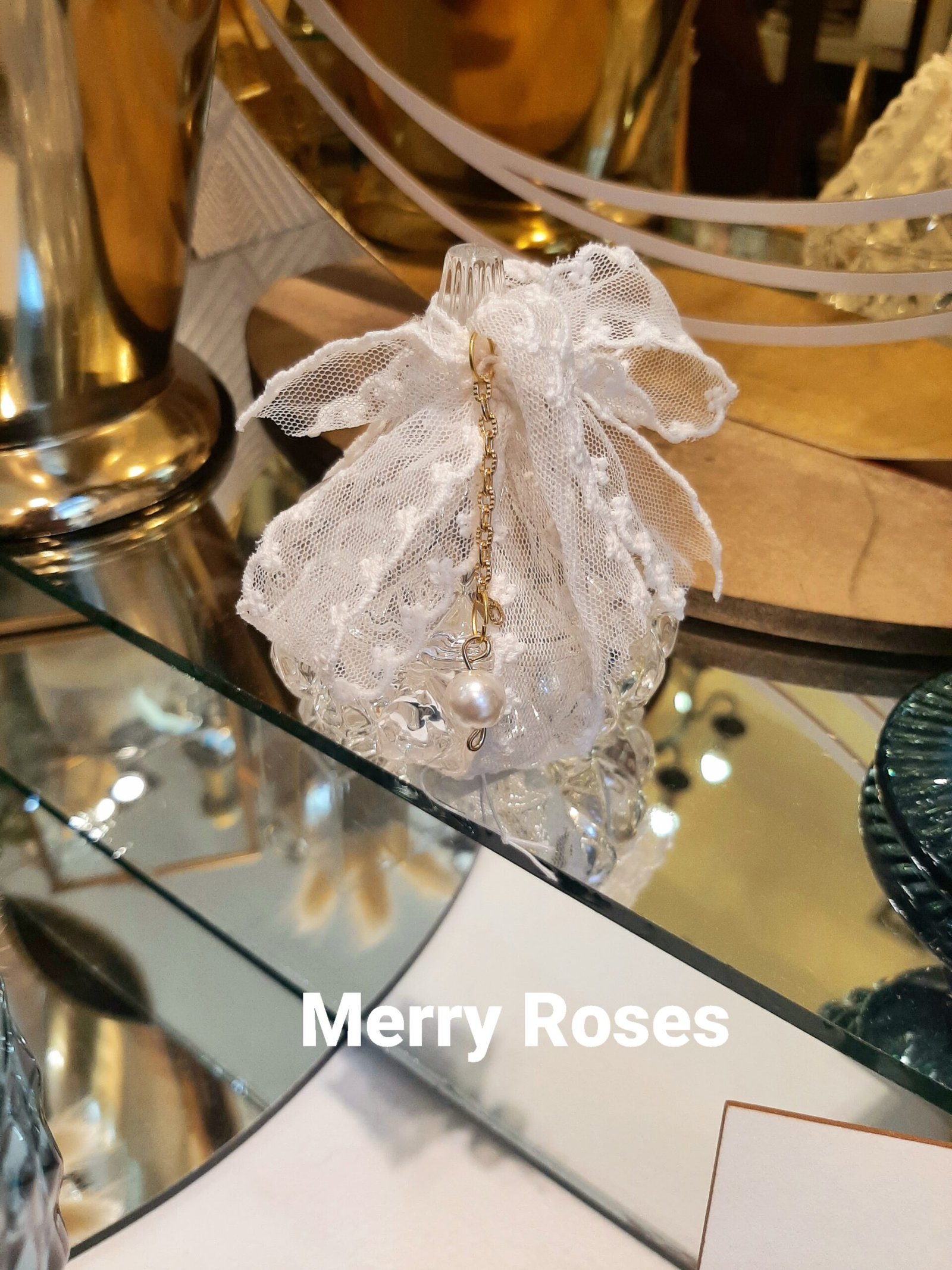 Γυάλινη Φοντανιέρα 8 *8,5 εκ με τούλινη κορδέλα δαντέλας & κόσμημα πέρλας.