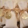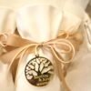 Μπομπονιέρα γάμου πουγκί πολυτελείας πικέ 22*12εκ, δεμένο με γκρό κορδέλα φιόγκο , χρυσό πλέξιγκλας το δέντρο της ζωής και χάραξη ονομάτων( ή αρχικών ζευγαριού) και ημερομηνία γάμου.