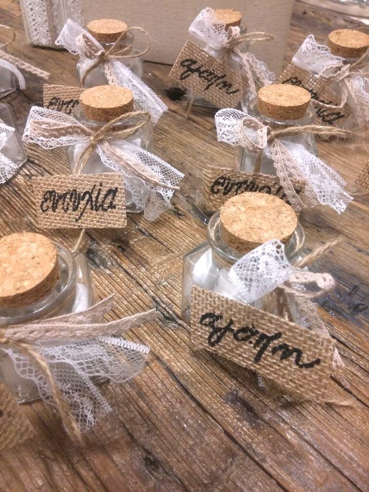 Μπομπονιέρα Γάμου Vintage με ευχές σε γυάλινο βαζάκι