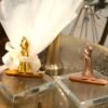 Ξεχωριστή μπομπονιέρα γάμου ,Ζευγάρι χρυσό μεταλλικό πάνω σε γυάλινη βάση