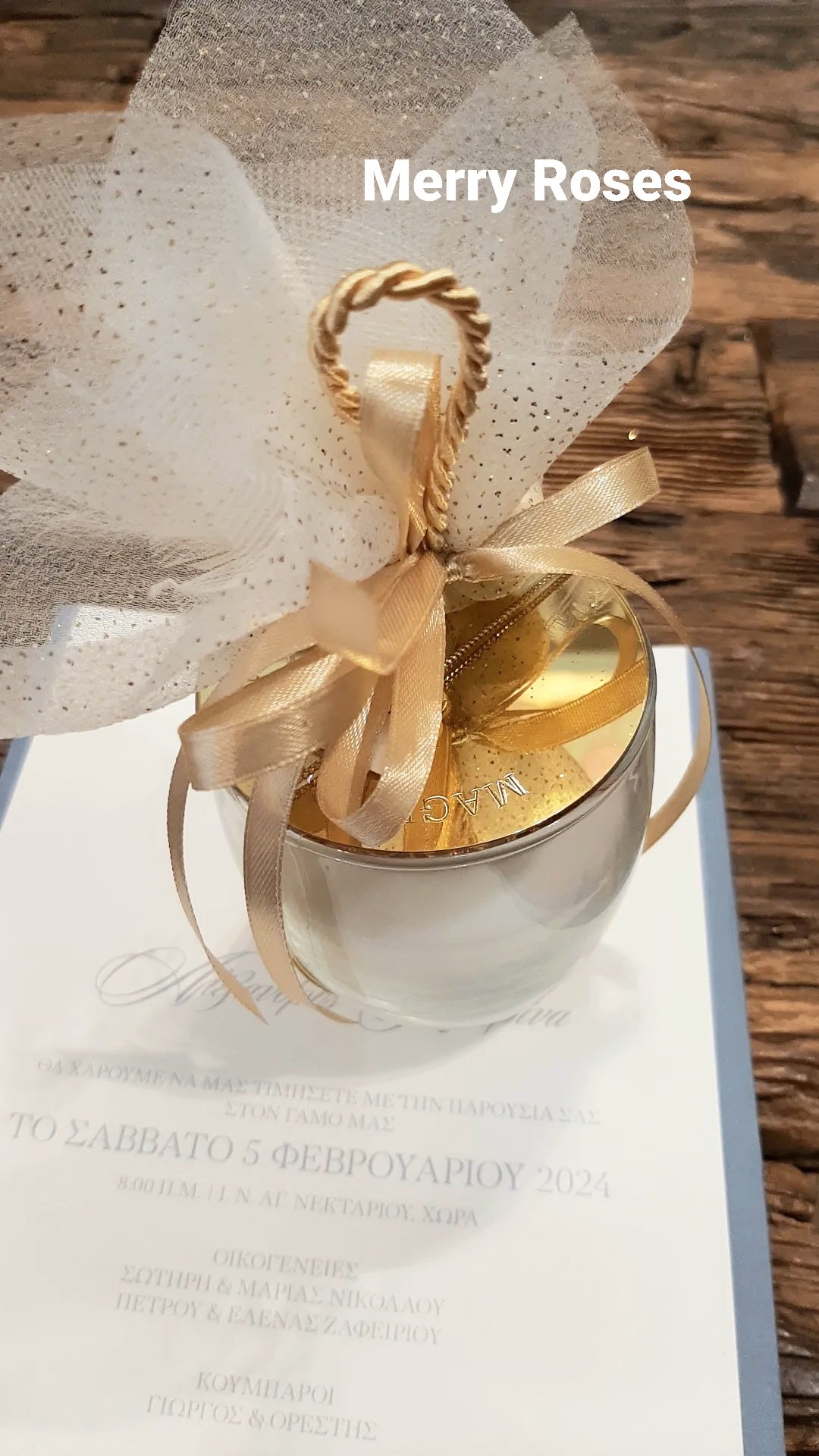 Μπομπονιέρα γάμου γυάλινο κηροπήγειο ,με χρυσό καπάκι πλέξιγκλας χάραξης που επιθυμείτε