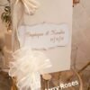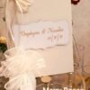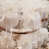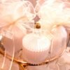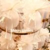 Μπομπονιέρα γάμου λευκή γυάλινη φοντανιέρα 6,5*9 εκ με χρυσή λεπτομέρεια μέσα σε οργάντζα.