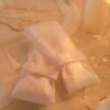 Τούλινη λευκή μπομπονιέρα γάμου,με τούλι 45*50 εκ, με γαλλικό φιόγκο απο λευκή γκρό κορδέλα.