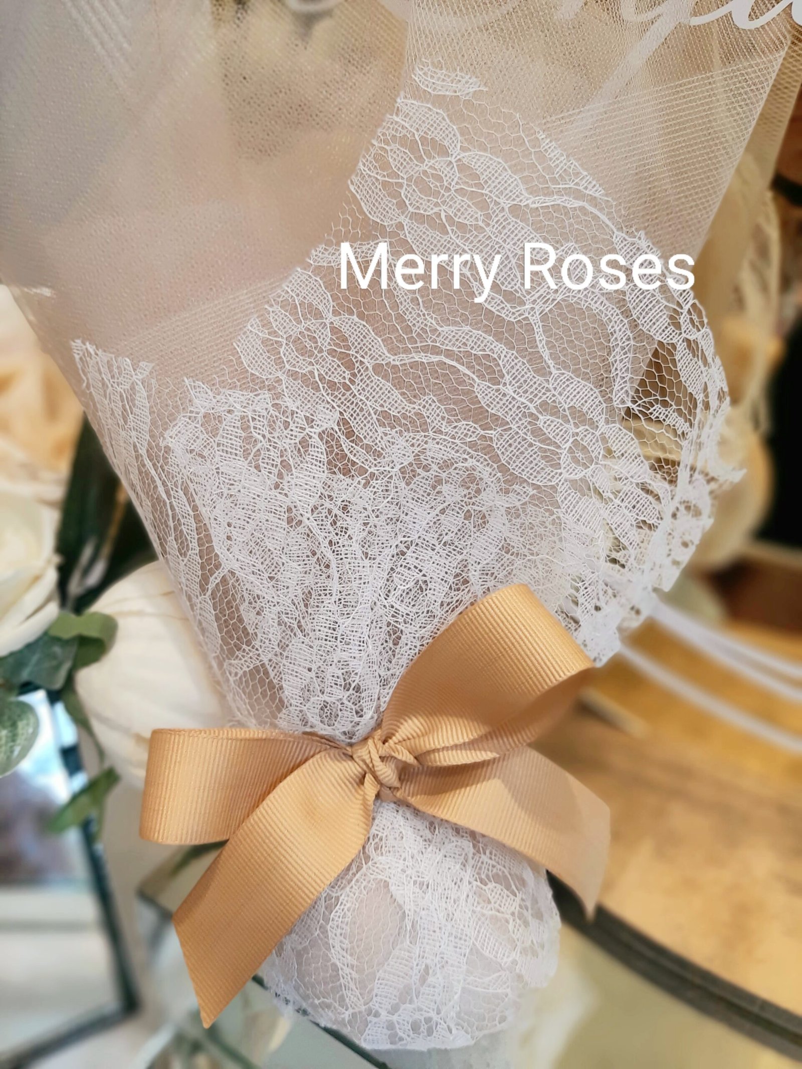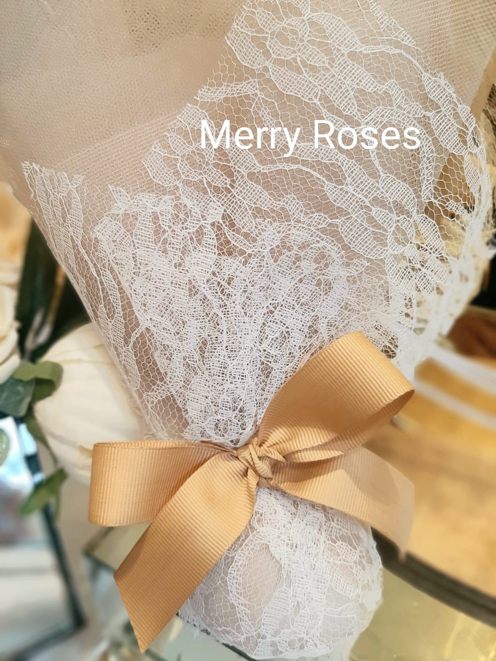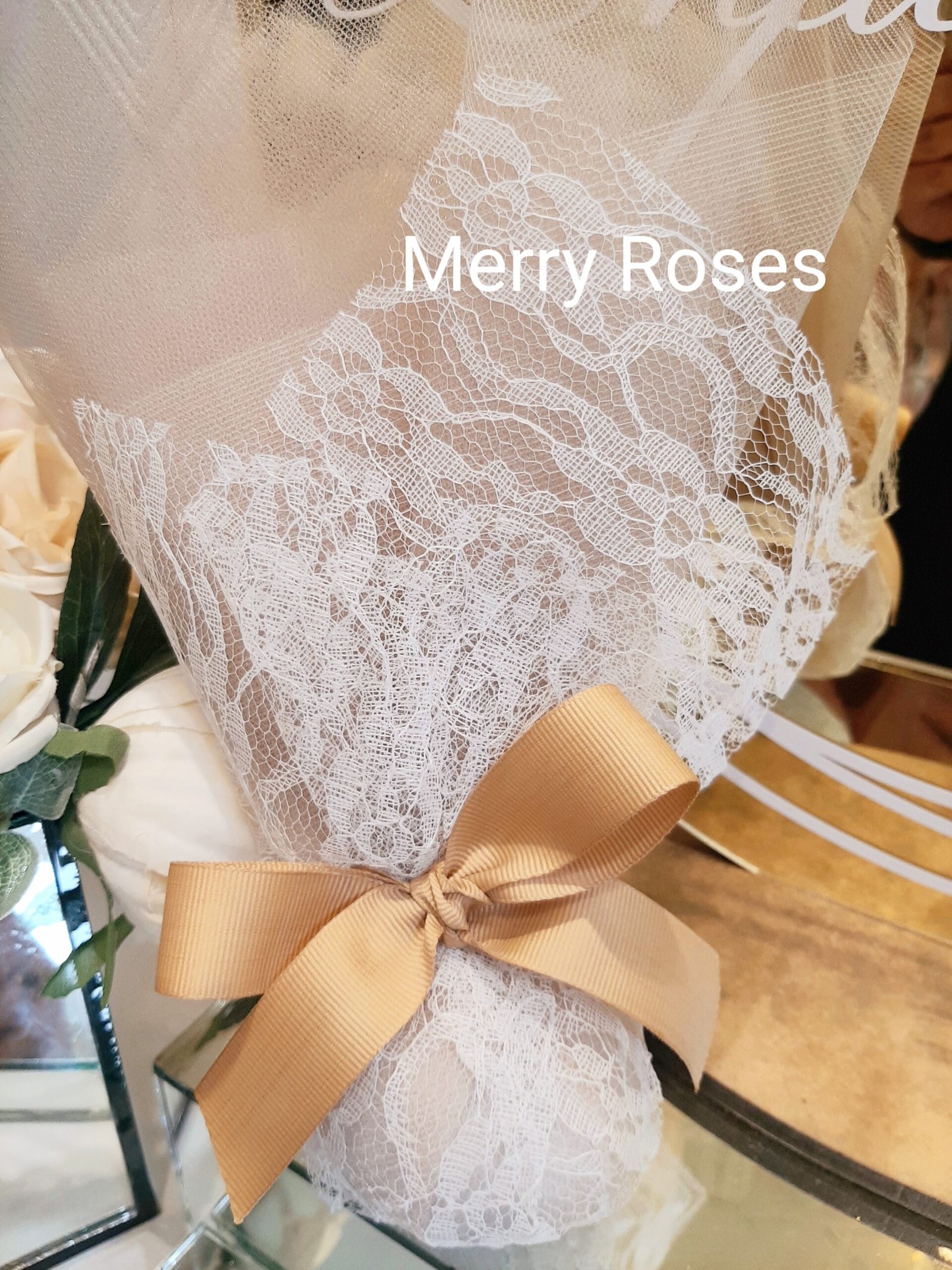 Μπομπονιέρα γάμου δίχρωμη με δαντέλα ιβουάρ και χρυσό γαλλικό τούλι