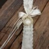 Ξεχωριστή μπομπονιέρα γάμου σε θήκη δαντέλας δεμένη με σατέν κορδέλες και χρυσό διακοσμητικό στεφάνι ελιάς